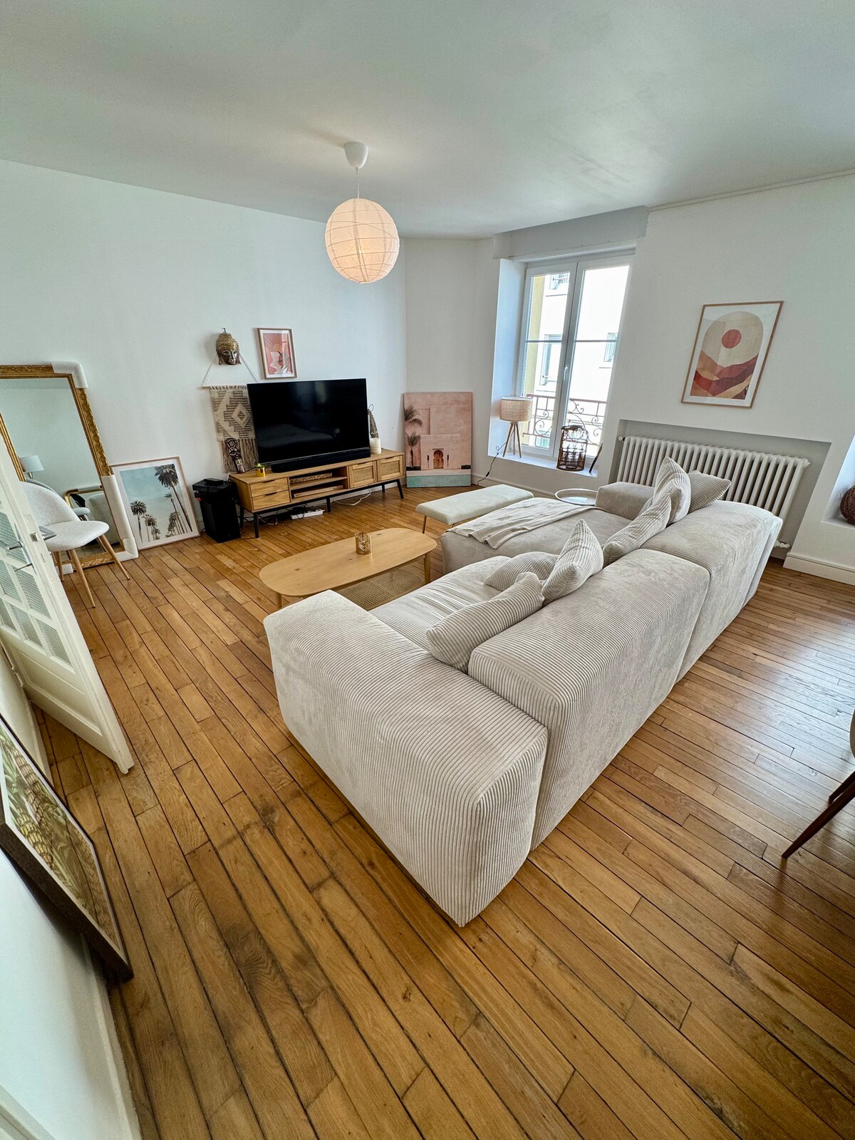 Ang tuluyan ay isang lumang bahay sa lungsod ng mga manggagawa (1930) na na-renovate na. Magagamit mo ang buong lugar (100 m2) ay may: - isang pasukan na may kumpletong kusina - ...at may sitting area na may sofa at TV - isang banyo (shower, lababo, toilet) - sa itaas, may unang kuwarto (double bed), pangalawang kuwarto (double bed), at banyo (bathtub, lababo, toilet) - Ika-3 kuwarto (double bed) na naa-access sa pamamagitan ng isa sa dalawa pang kuwarto - isang silong na may washing machine at hanging rack