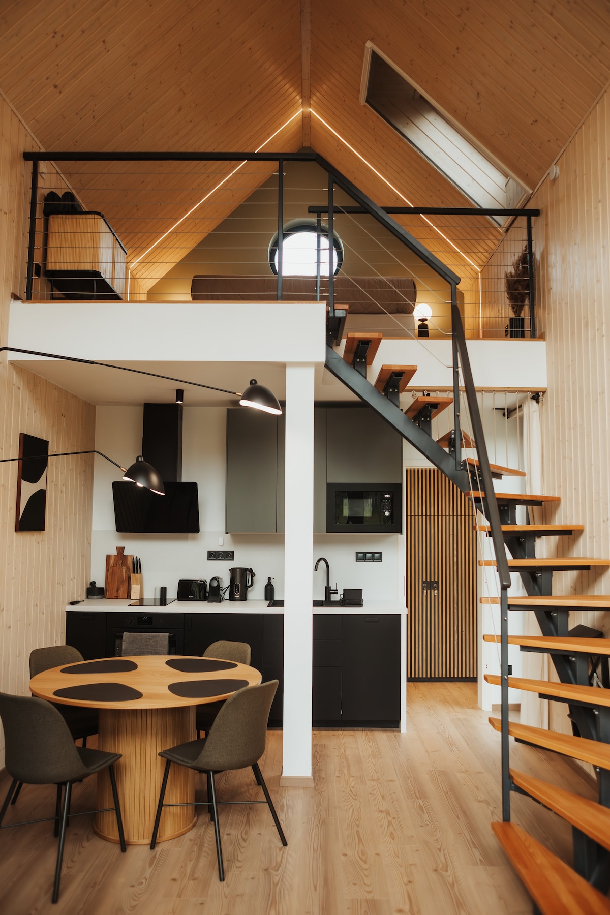 Samahan ang iyong mga kaibigan at pamilya, at bisitahin kami sa kakahuyan, malayo sa lahat. Masisiyahan kang magkasama habang ang kalikasan, at ang mga puno, na naaabot ng iyong braso, ay nagpapakita sa iyo ng ibang mukha sa bawat panahon. Sa tag - init ito ay mas malamig kaysa sa mainit na lungsod, ang taglagas ay simpleng maganda, at - sorpresa - ang kulay abong hamog sa taglamig ay mas maganda sa tabi ng tile na kalan. Mag - hike sa malapit, pagkatapos ay magluto ng hapunan nang magkasama, at tapusin ang araw sa sauna!