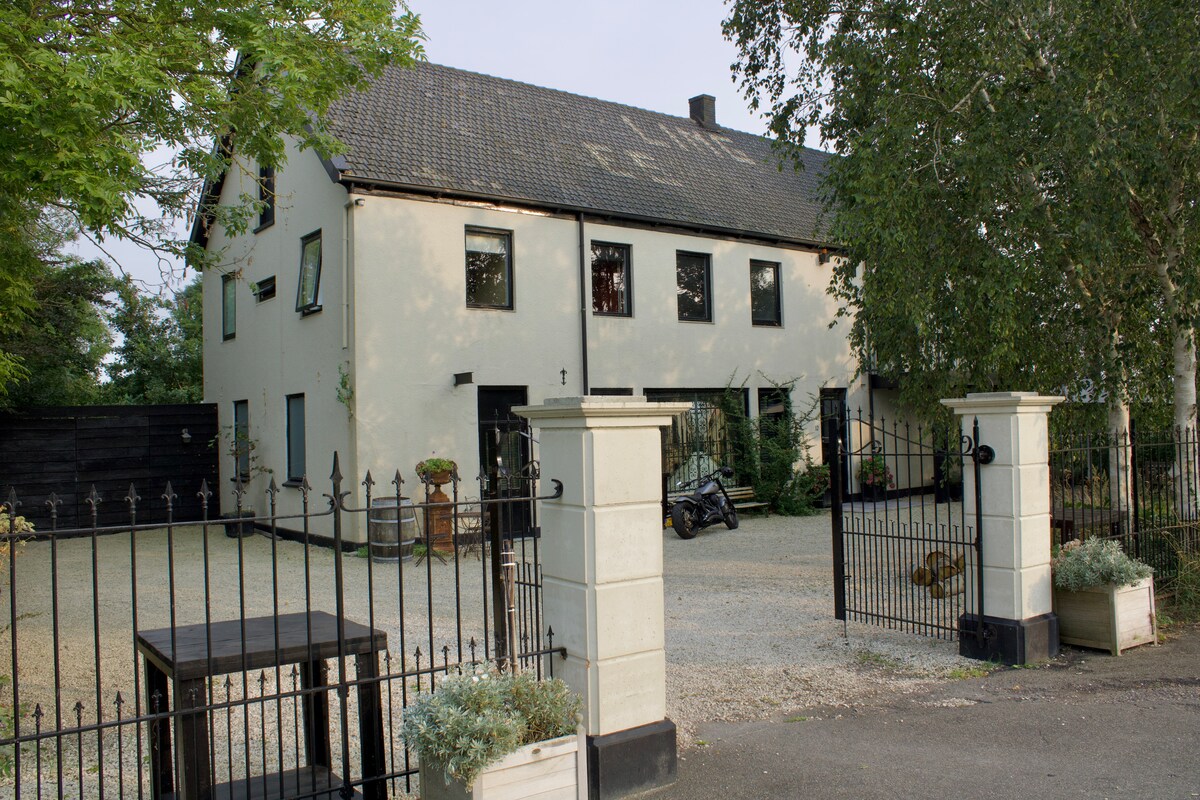The centrally located Smithy is a wonderful place to hang out with your friends, family, and colleagues all year round. During the winter, have a drink by the fireplace in the spacious living room. During the summer, enjoy a BBQ in the sun-drenched garden, looking over the water. Cook together in the bright kitchen, and enjoy a delicious meal at the dinner table. The location of the historic barracks, The Ripperda, is not only beautiful but also wonderfully central.