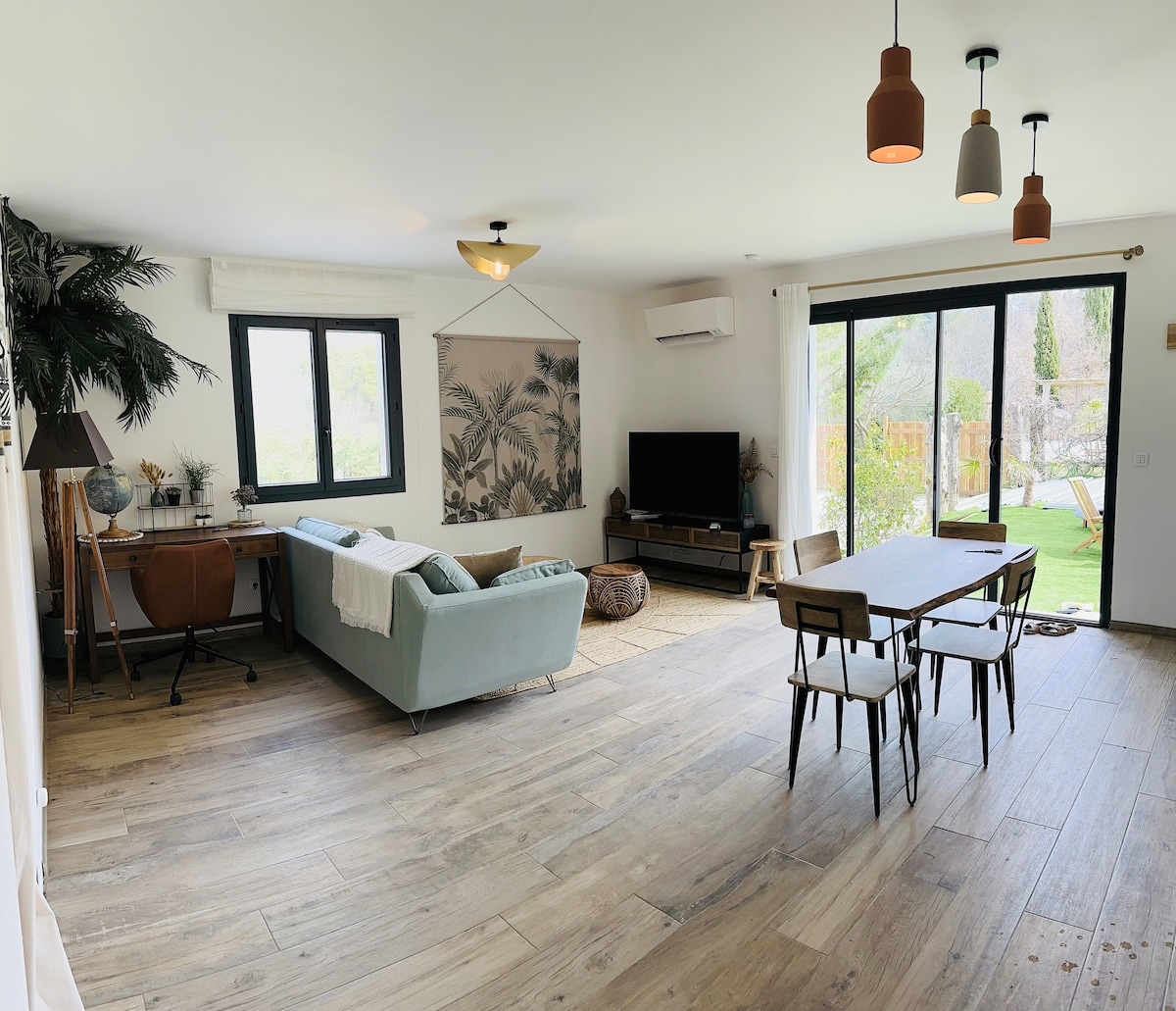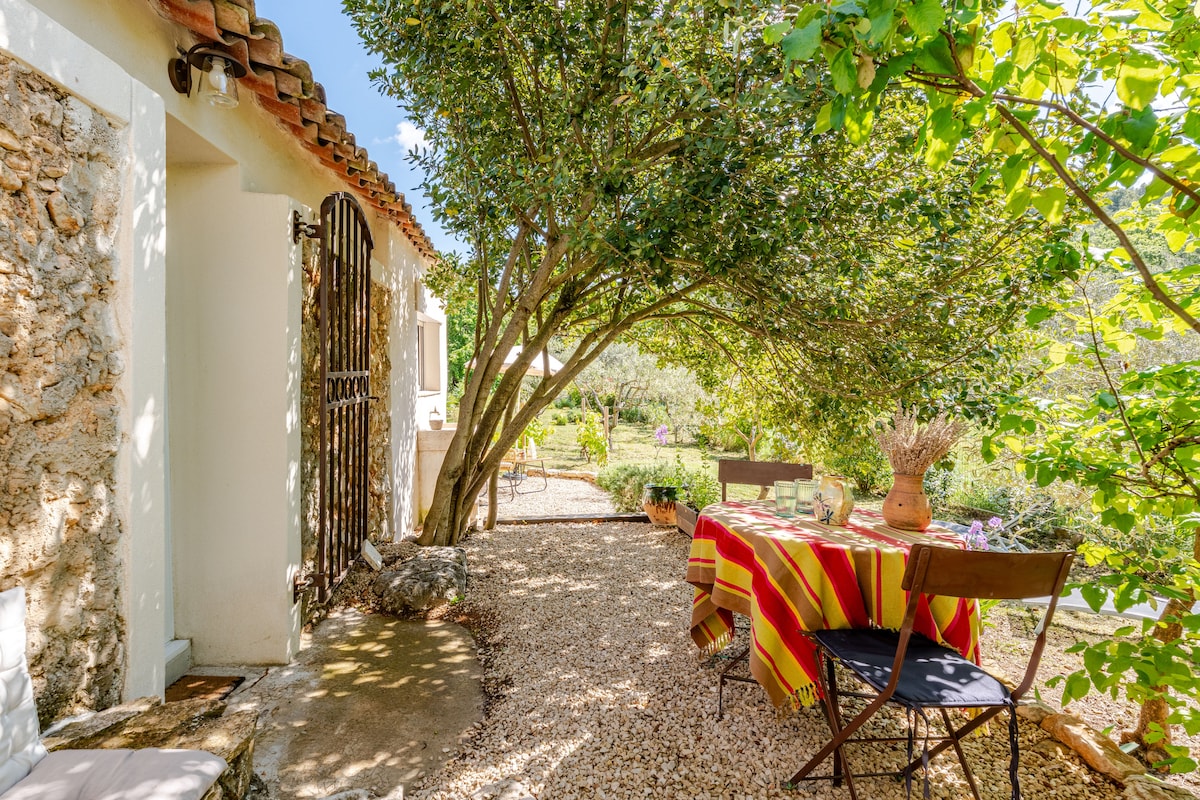 Cette maison lumineuse et climatisée est située au fond de notre parcelle paysagée de 4000 m2. Elle est très bien équipée avec du matériel de qualité pour vous garantir un excellent séjour. La provence comme vous l’imaginez…jardin privatif sans vis à vis, accès gratuit à la piscine, au terrain de petanque, barbecue. A pied du centre de notre charmant village provençal. Point de départ idéal pour découvrir Aix-en-Provence, Marseille, Cassis et les calanques ou randonner dans la Sainte-Victoire.