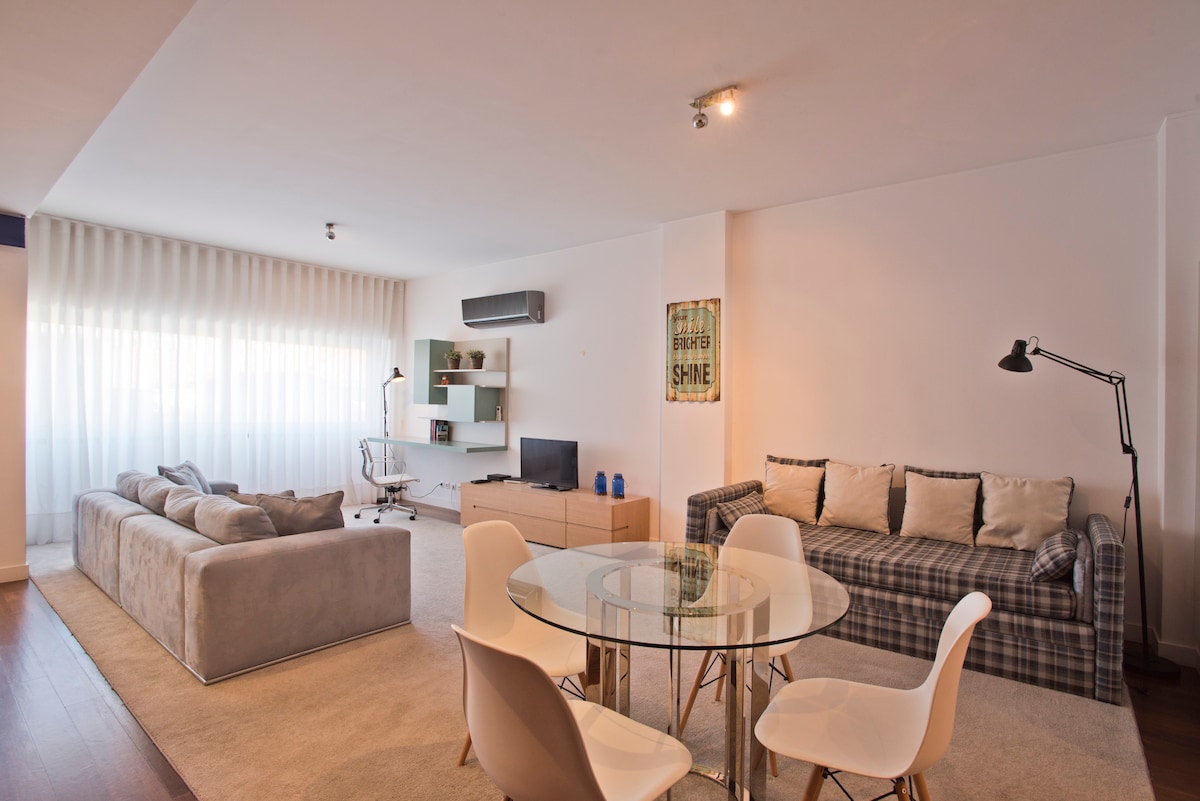 Nasa gitna ng Lisbon, mag - enjoy sa maluwag, elegante at sentrong tuluyan. Matatagpuan 2 bloke mula sa iconic Time Out Market, ang apartment ng tungkol sa 50m2 ay binubuo ng: - Living / Dining room ( 1 sofa bed para sa 2 tao) - Open Space Nilagyan ng Kusina - 1 banyo - shower - 1 silid - tulugan na may double bed ( 160x200) - Smart TV/ Netflix - AC - Wi - Fi / FIBER Maximum: 4 na may sapat na gulang Hindi pinapahintulutan ang mga alagang hayop sa NON - SMOKING NA APARTMENT Apartment pinalamutian ng pag - aalaga at maliwanag. Tiniyak ng Coup de Coeur!