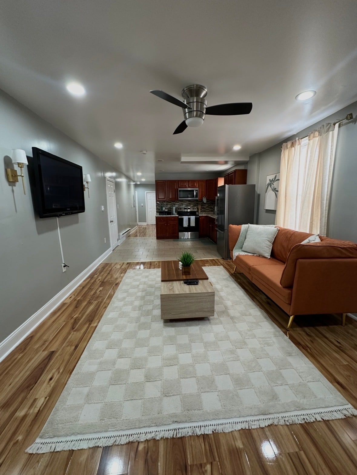 Open-concept na layout ng sala at silid-kainan na may mga modernong finish, maluluwang na upuan, at pribadong deck para sa pagrerelaks. Matatagpuan sa tahimik na sulok na loteng may kaunting trapiko at madaling paradahan sa driveway, komportableng makakapamalagi sa tuluyan ang anim na tao at angkop ito para sa mga pamamalagi ng grupo at maliliit na pagtitipon. Nililinis nang propesyonal at inihahanda nang mabuti para sa bawat pamamalagi, at may madaling sariling pag-check in para sa mga flexible na pagdating. Nagpaplano ka ba ng maliit na pagtitipon? Padalhan muna kami ng mensahe para kumpirmahin ang mga detalye.