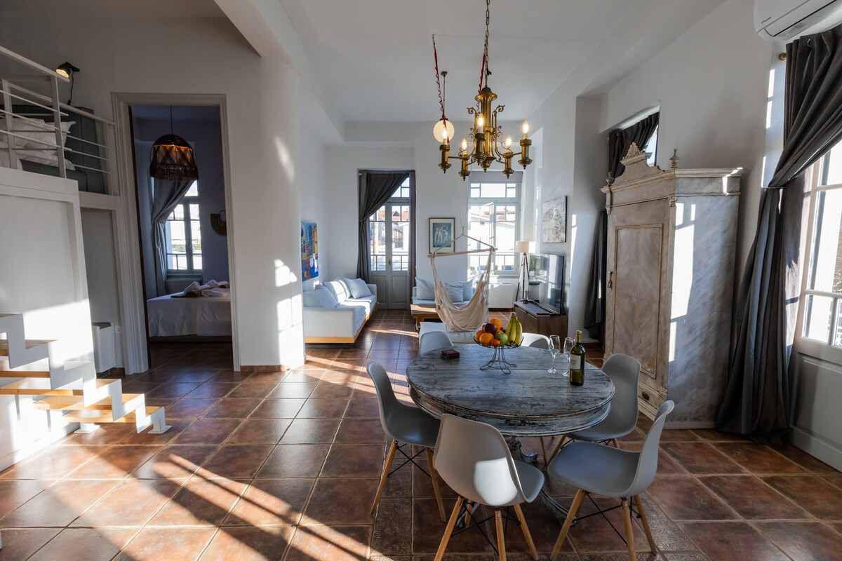 Isang natatanging paghahanap sa gitna ng Nafpaktos sa harap ng sikat na beach ng Psani na may walang limitasyong tanawin ng asul na Patraikos. Ganap na na - renovate, moderno at modernong penthouse ng mataas na estetika na maaaring tumanggap ng 5+ bisita, na nagbibigay ng direktang access sa lahat ng mga tanawin at lugar na interesante ng lungsod dahil 5 minuto lang ang layo nito mula sa Venetian harbor.