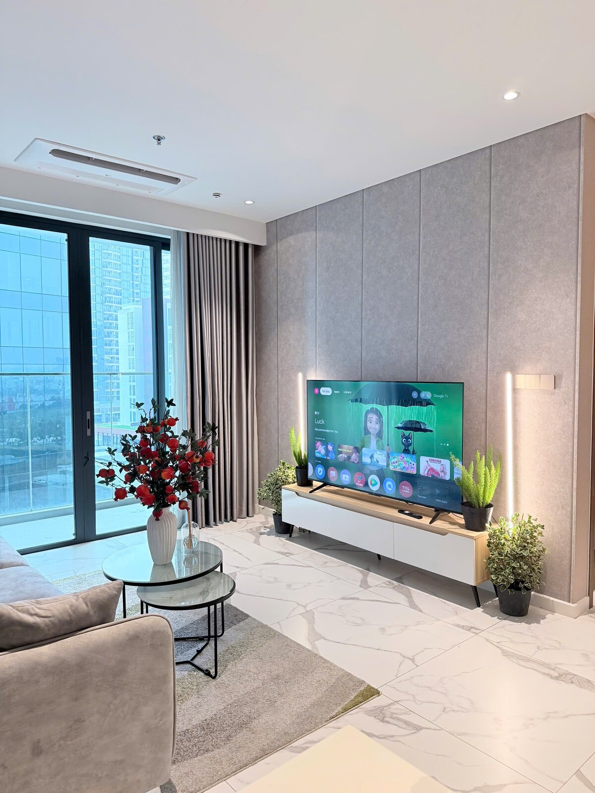 Luxury 5* The Opera Residence Corner Apartment by ChiHome - River View Bason District 1, The LandMark 81, The Galleria, The Mett Office, District 2 Sala Thiso Mall. - Tower B, Scala, Level 1x unit 10 - Laki: 70m2 (sulok na yunit) - May kasamang 2 silid - tulugan, 2WC, komportableng mamalagi mula sa 2 -4 na tao. - 65inch Smart TV na may Netflix at YouTube - Sofa, Armchair, tea table. - Hapag - kainan 4 na upuan - Mga kumpletong kagamitan sa pagluluto - Available ang high - speed wireless internet • Aircon para sa buong bahay - 24/7 na access sa gusali