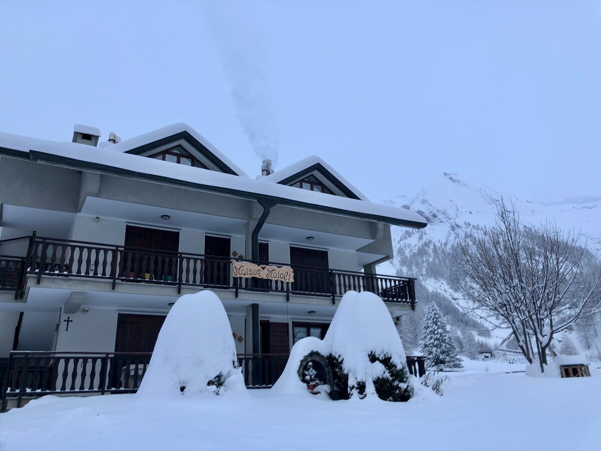 Tunay na bundok. Matatagpuan ang bahay malapit sa Mont Avic Natural Park at 3 km mula sa sentro ng Champorcher. Matatagpuan ang tuluyan sa isang independiyenteng bahay, na matatagpuan sa isang maliit at tahimik na hamlet sa taas na 1600 metro, para matamasa mo ang kapayapaan, pagiging malapit at nakamamanghang tanawin ng mga bundok. Mainam ang aking patuluyan para sa mga mag - asawang naghahanap ng sports at kalikasan, o pagpapahinga at kapanatagan ng isip. Posibilidad ng mga pana - panahong/buwanang matutuluyan para sa panahon ng taglamig.