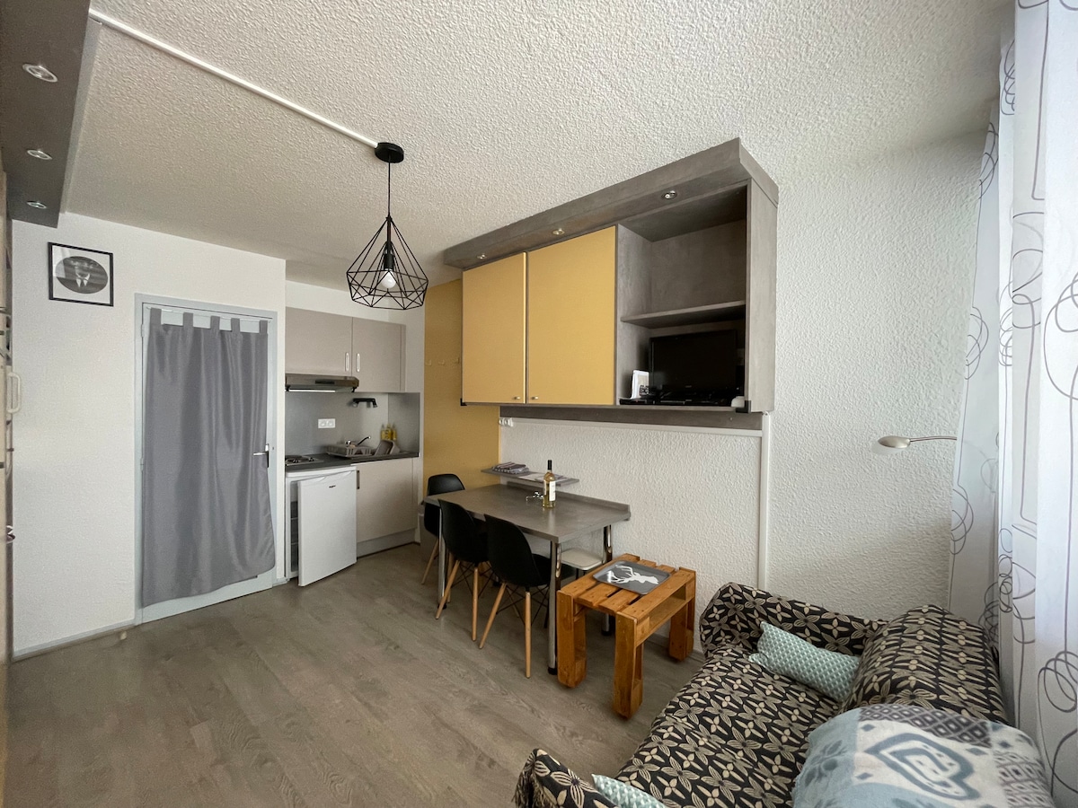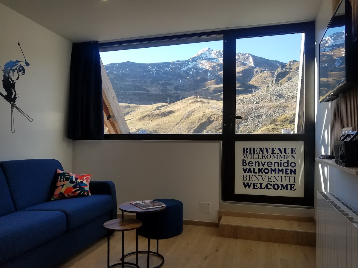 SA PAANAN NG MGA PISTES - MAGANDANG TANAWIN NG MAARAW NA VALLEE - TERASSE 4 - seater studio sa matataas na bundok (1860m) sa paanan ng mga dalisdis. Sa taglamig, mararating namin ang mga residence skis habang naglalakad na may direktang access sa mga ski locker. Malaking balkonahe maaraw na terrace sa timog - silangan Napakagandang tanawin kung saan matatanaw ang mga bundok, ang mga dalisdis at ang Aure Valley ay hindi napapansin. 150 m mula sa mga tindahan 200 metro mula sa ski school at sa Edasis Aqualudic Center 4G+ Internet (kasalukuyang notea pb na may libreng antena sa ilalim ng pagkumpuni)
