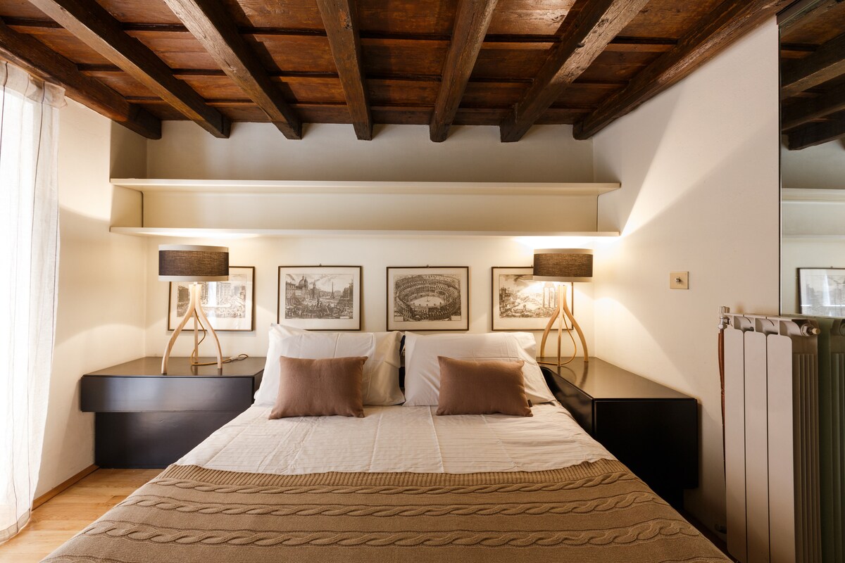 Maligayang pagdating sa Dimora Trevi, ang iyong Romanong tahanan na malayo sa tahanan. Matatagpuan sa ikalawang palapag, kailangan mo lang umakyat ng 16 na hakbang para makarating sa kaakit-akit na Romanong tirahan na ito. Matatagpuan ang 85 sqm na apartment na ito sa isang makasaysayang gusali sa pagitan ng Trevi Fountain at Piazza di Spagna. Pinagsasama‑sama nito ang ganda ng tradisyonal na istilong Romano na may mga kahoy na kisame, pader na gawa sa brick, at walang hanggang dating. Hayaan ang iyong sarili na mapalibutan ng kagandahan, kasaysayan, at init ng isang natatanging lugar.