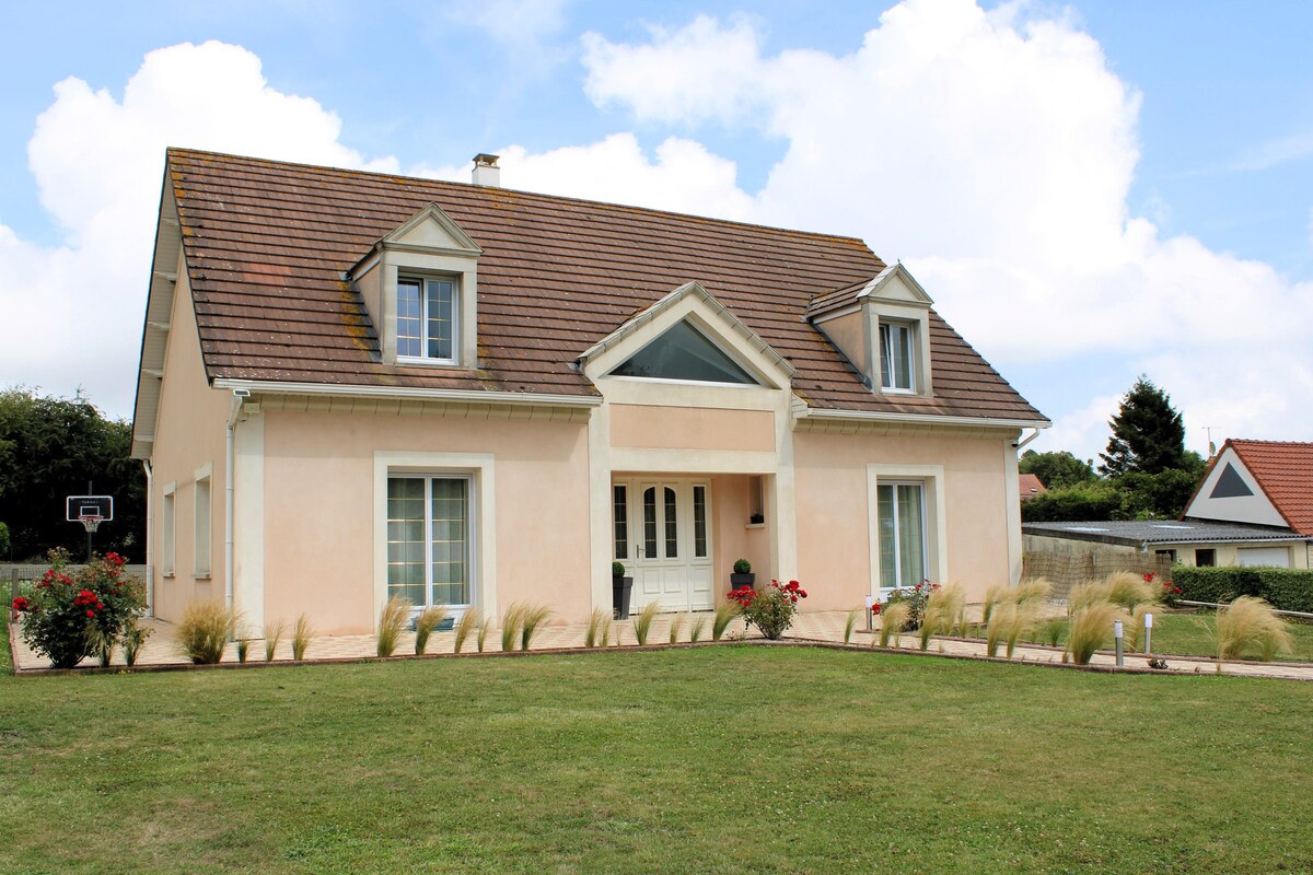 Kung mahilig ka sa kalikasan, malawak na bukas na espasyo at mga sandy beach hangga 't nakikita ng mata, ito ang lugar para sa iyo! Isang malaki, kumpleto ang kagamitan, kumpletong sarado, at hiwalay na bahay - bakasyunan para sa hanggang 14 na tao. Mag - enjoy at magrelaks kasama ang pamilya o mga kaibigan sa kanayunan - sa pagitan ng dagat, mga bukid at kagubatan - sa kahanga - hangang Côte d 'Opale, isang bato lang mula sa England. Matatagpuan sa isang maliit at tahimik na nayon, 15 minuto mula sa dagat at mga beach: Wissant, Calais, site des 2 Caps... At 10 minuto mula sa kagubatan.