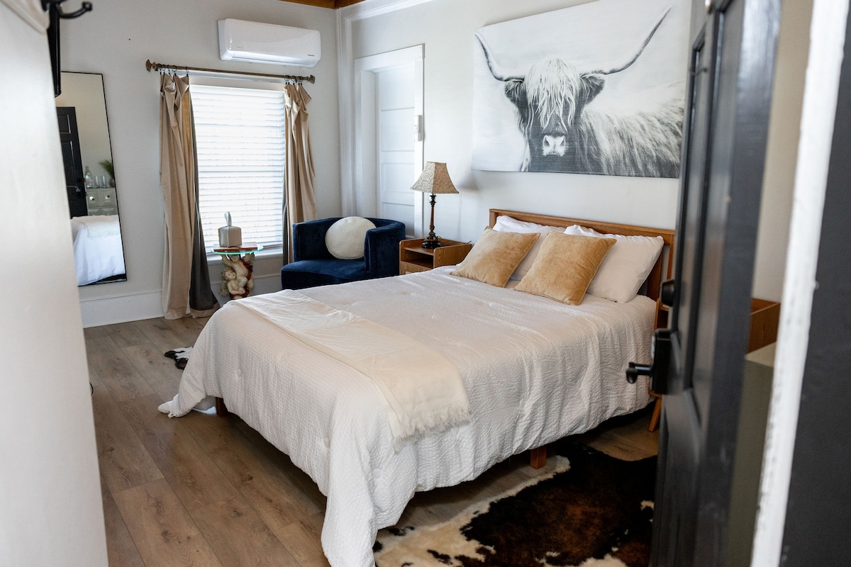 Mag - enjoy sa naka - istilong karanasan sa studio na ito na may gitnang lokasyon. Restawran at bar sa tapat mismo ng kalye. Tahimik na .3 milyang lakad sa kalsadang dumi papunta sa lawa kung saan puwede kang mag - kayak, lumangoy o manonood lang ng paglubog ng araw sa aming semi - pribadong pantalan. Lahat ng kaginhawaan ng tuluyan sa magandang setting ng studio. Queen bed, twin pull out, smart tv, libreng wifi, kumpletong kusina at paliguan. Perpekto para sa 1 -3 tao. Bagong na - renovate sa pinakamataas na pamantayan. Pamilyang pag - aari at pinapatakbo ng mga lokal na superhost. Sumama ka sa amin.