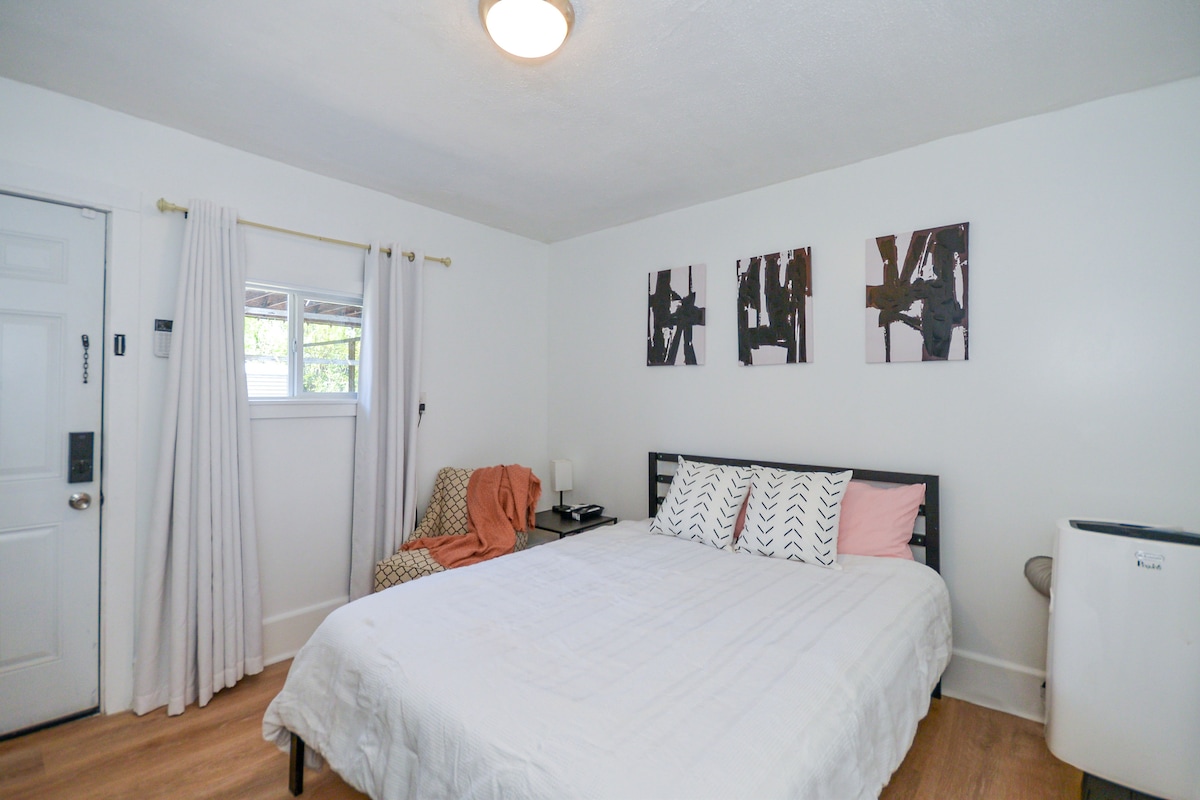 Maligayang pagdating sa Tandy! Matatagpuan sa gitna ang kaakit - akit na tuluyan sa hardin na ito. Nagtatampok ang property na ito ng 2 silid - tulugan at 2 banyo. Nagtatampok ang Bedroom #1 ng Queen Bed na may buong paliguan na nasa tabi mismo nito. Nagtatampok ang Bedroom #2 ng ensuite na may King bed at direktang access sa patyo sa labas. Nagtatampok ang sala ng 55' smart TV, plush sectional couch na komportableng nakaupo 6. Nagho - host ang silid - kainan 6 na may kumpletong na - update na kusina na may W/D. Nagtatampok din ang tuluyang ito ng ganap na bakod na bakuran. Natatanging hanapin!