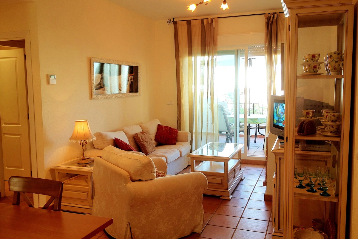 Napakagandang apartment, malinis at may tanawin ng golf course. Magrelaks at magdiskonekta. Hindi pinapahintulutan ang mga ALAGANG HAYOP na may anumang laki; ikinalulungkot namin ngunit napaka - allergy ng may - ari. Ang pag - unlad ay may pool. 20 minutong lakad papunta sa La Antilla beach o 3 minutong biyahe Nagtatampok ito ng saklaw na paradahan na may access sa elevator papunta sa sala. Bagong bahay na may mga lamok, AC at kisame sa kuwarto at sala. Shower hob sa banyo.