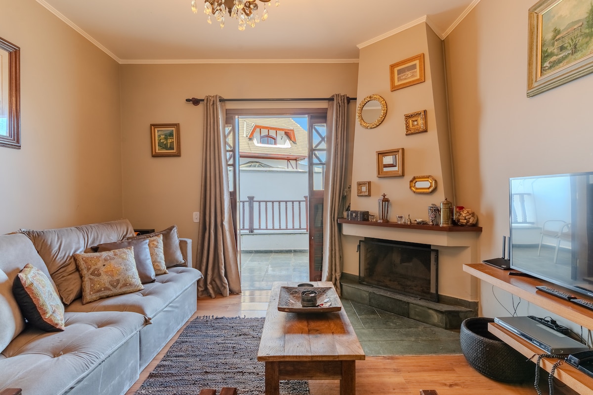 Apartment sa Campos do Jordão, sa Alto de Capivari, na may 1 silid - tulugan na may king double bed, aparador, salamin, TV at armchair. Sa sala ay may sofa na nagiging 2 solong higaan din, na may lilim na maaaring ihiwalay ang kapaligiran mula sa iba pang lugar, na nagbibigay ng privacy. Kuwartong may fireplace at smart TV. Kusina na may minibar, microwave, coffee maker Três Corações, sandwich maker, Air Fryer at electric oven (walang kalan). Matatagpuan ito 3.5 km mula sa Centro de Capivari.