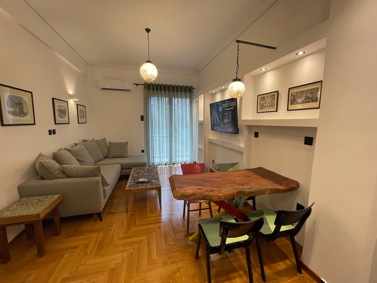 Nag‑aalok ang maliwanag at magandang semi‑basement apartment na ito na may sukat na 90m² ng modernong kaginhawa at artistikong ganda para sa magiliw at maginhawang karanasan. Perpekto para sa mga mag‑asawa, pamilya, o magkakaibigan, at nasa isa sa mga pinakalumang kapitbahayan sa sentro ng Athens ito, na malapit lang sa Acropolis at Ancient Agora. Puwedeng gamitin ng mga bisita ang nakabahaging rooftop terrace na may magandang tanawin ng Acropolis, magkape, mag‑wine, o mag‑relax sa hot tub.