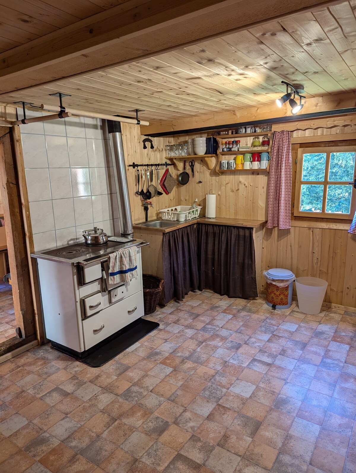 100 Jahre altes Blockhaus, welches 2008 im Nachbardorf abgerissen und bei uns am Bio-Bergbauernhof wieder aufgebaut wurde. Dabei wurde besondere Sorgfalt auf die Verwendung natürlicher Baustoffe (Schilf, Lehmputz, Altholz) gelegt. Als Dacheindeckung dienen traditionelle Lärchenschindeln. Das Haus wird über einen großen Küchenherd und eine thermische Solaranlage geheizt, das Badezimmer verfügt über eine Fußbodenheizung. Das heimelige kleine Haus (75 m²) diente uns 10 Jahre lang als Wohnsitz.