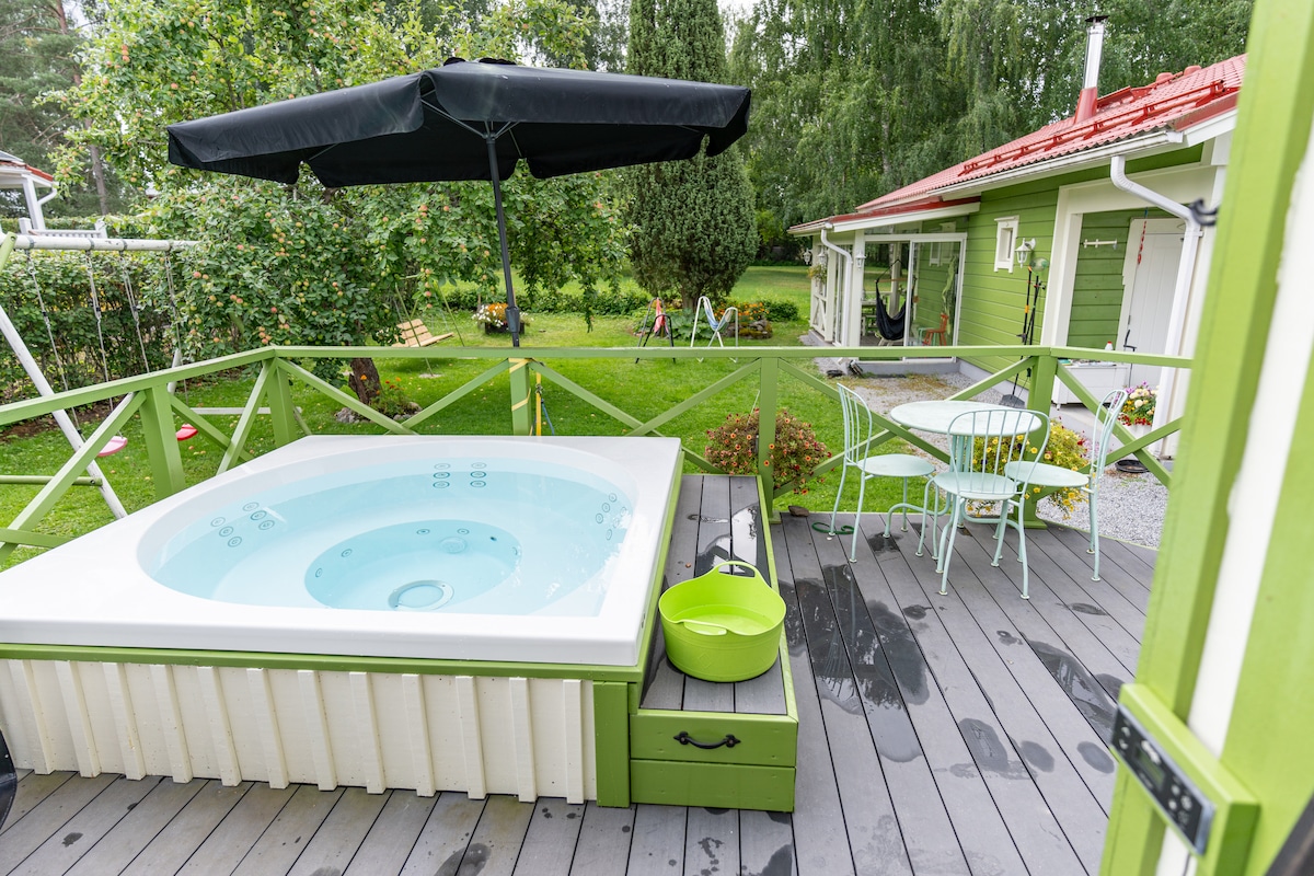 Talagang pambihira sa lugar - isang malinis at kumpletong cottage na may sauna at jacuzzi sa tabi ng tahimik na parke, na may mahusay na mga link sa transportasyon papunta sa lungsod! Angkop para sa mga taong may mga allergy. 1.8 milya (3 km) ang layo mula sa Nokia Arena. 8 minuto sa pamamagitan ng kotse, 10 minuto sa pamamagitan ng numero ng bus 10, 40 minuto sa pamamagitan ng paglalakad. ❗️ Kung naghahanap ka ng lugar para sa mga party, o mga katulad na kaganapan, o kung nagpaplano kang mag - imbita ng mga bisita, sa kasamaang - palad, hindi ang aming cottage ang tamang lugar para sa iyo. Matatagpuan ang cottage sa isang tahimik na residential area.