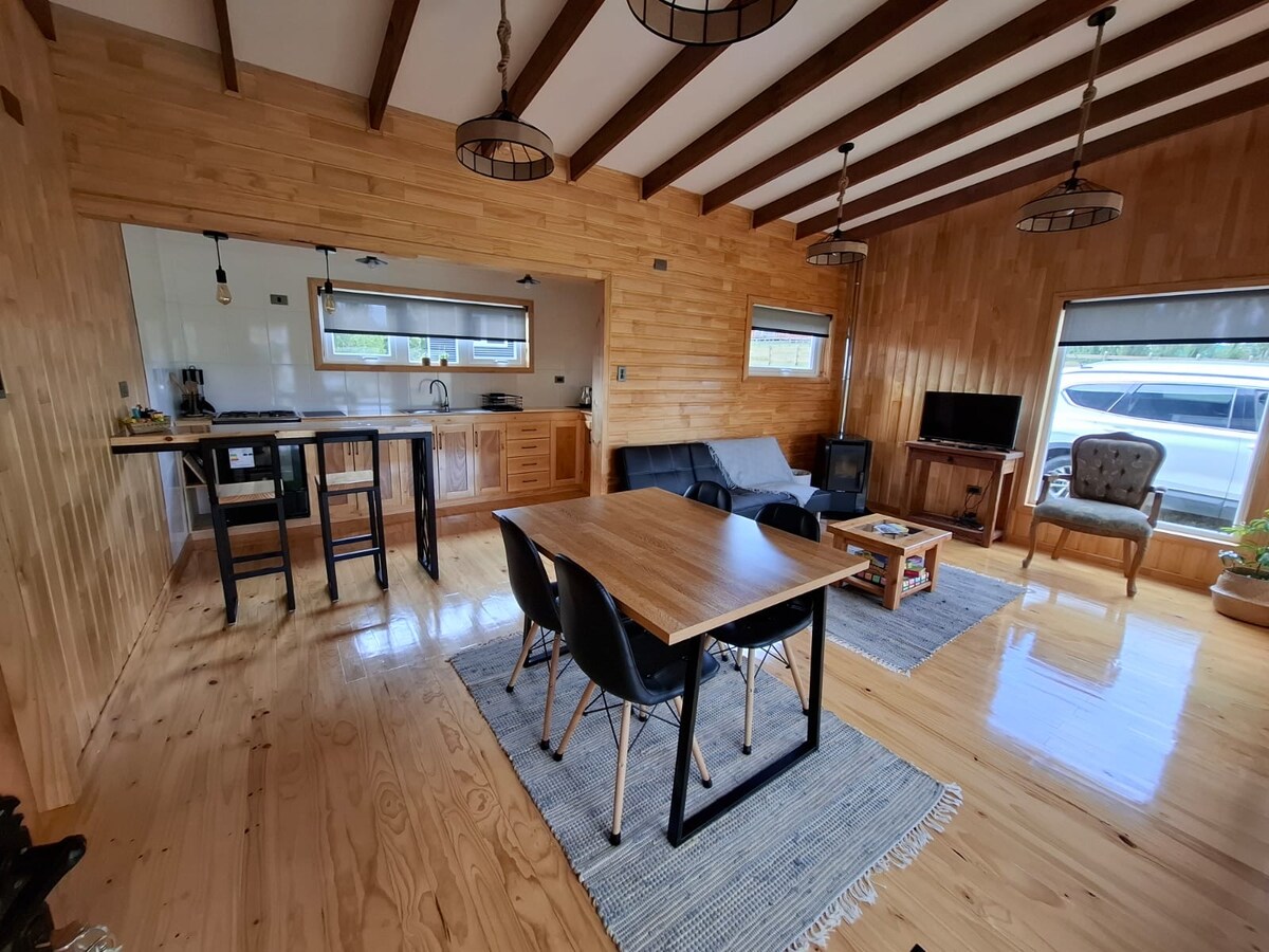 Mabuhay ang karanasan sa timog Chile sa pinakamaganda nito, sa isang natatangi at eksklusibong kapaligiran, na nilikha para tamasahin at pag - isipan ang lugar sa bawat panahon ng taon. Dito magkakaroon ka ng mga hindi malilimutang panorama ng flora at palahayupan ng lugar sa iyong mga paa, pati na rin ang hanay ng bundok at ang marilag na Karagatang Pasipiko. Ang lahat ng ito sa isang kusinang kumpleto sa kagamitan at idinisenyo para sa isang kaaya - ayang pamamalagi. Mahigpit naming pinagtutuunan ng pansin ang palikuran at kalinisan ng lugar, at handa kaming tumulong sa lahat ng iyong pangangailangan!