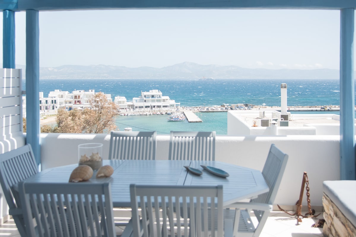Nasa itaas na palapag ng gusaling nasa loob ng dagat ang Superior Apartment sa tabi ng beach… Nagbibigay ito ng isang sala na may kusinang kumpleto sa kagamitan, isang silid - tulugan at dalawang banyo. May tanawin ng dagat ang sala papunta sa Dagat Aegean at sa isla ng Naxos. Ang silid - tulugan ay may tanawin ng dagat sa buong beach ng Piso Livadi at ng tradisyonal na pier . Enjoy your holidays almost on board!!!
