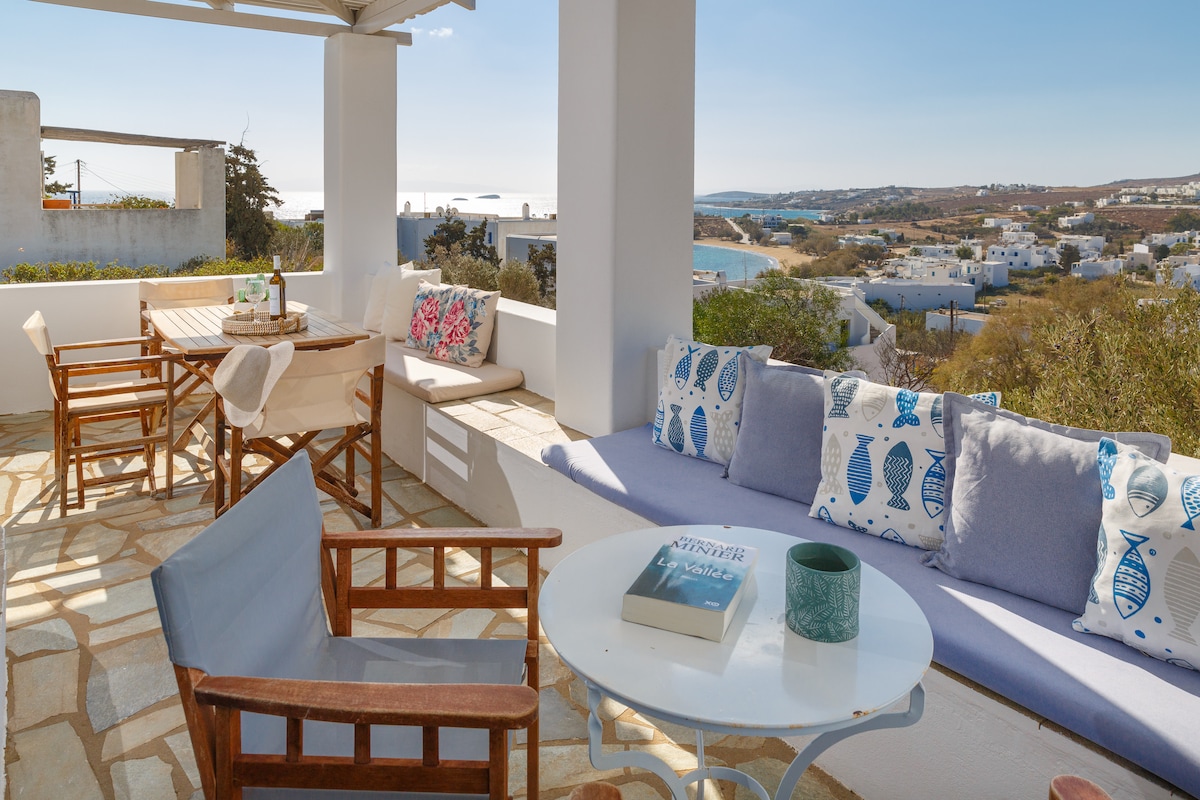 Buksan ang mga shutter na gawa sa dagat at pasukin ang simoy ng hangin, pagkatapos ay magluto ng meryenda sa patungan ng kongkretong kusina sa lungsod sa isang maaliwalas na bakasyunan sa aplaya. Pumasok sa maluwang at maluwag na beranda para sa mga inuming panlibangan sa paglubog ng araw na may tanawin ng karagatan na walang harang! Ang apartment ay matatagpuan sa tabi ng isang mabuhangin na beach para sa isang paglangoy sa umaga at isang 2 minutong lakad mula sa gitna ng Naousa at sa pangunahing liwasan nito. Nasa maigsing distansya ang mga tindahan, restawran, bar, at club, pero tahimik at kalmado ang lugar!