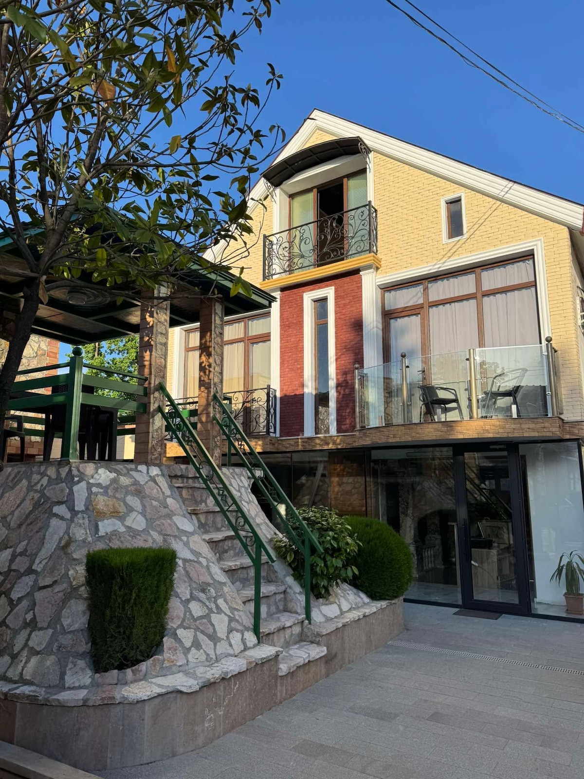 Welcome to our stylish and modern home in the heart of Kaprovani, perfect for family getaways or gatherings with friends. Comfortably accommodating up to 12 guests, the house offers a bright and open space with high, transparent windows that connect you to the lush garden and surrounding greenery. Whether you're relaxing indoors or enjoying the outdoors, this is the ideal spot to unwind and make lasting memories together.