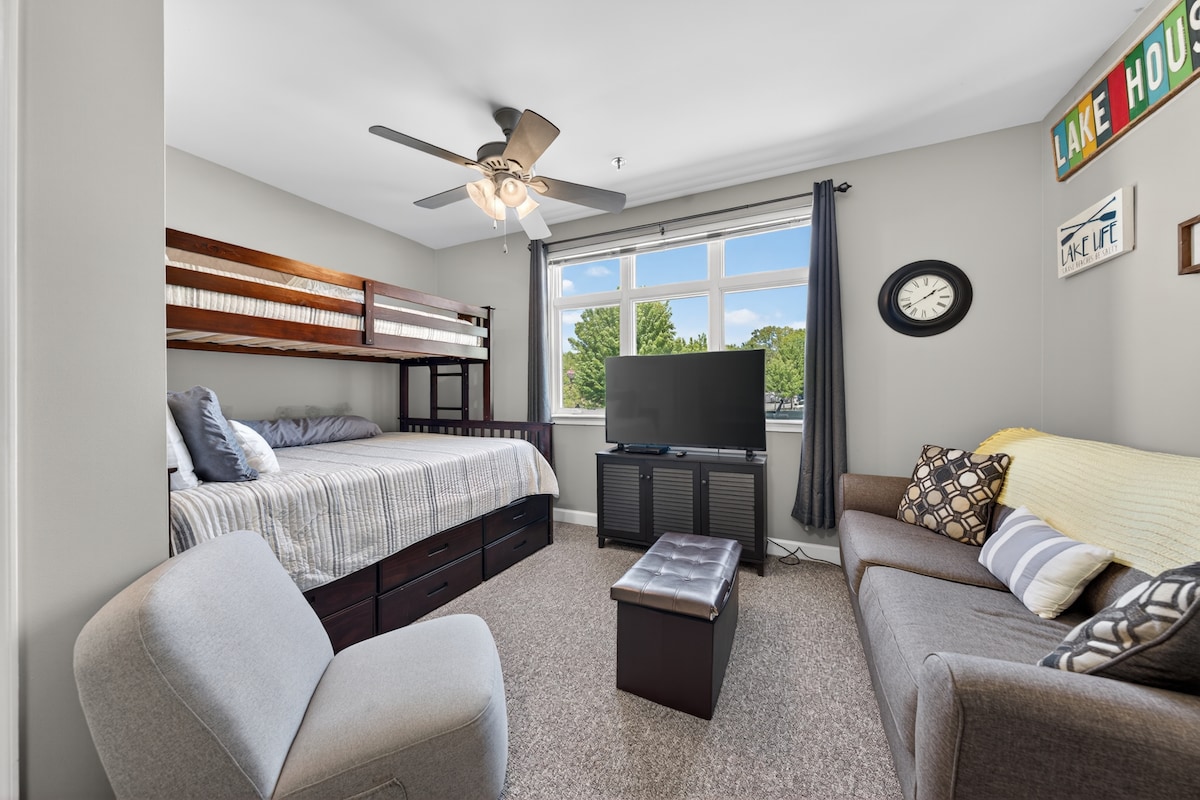 Mag-enjoy sa madaling access sa lawa mula sa aming unit sa dulo ng unang palapag na may maikling lakad papunta sa mga pantalan at beach! Kinakailangan lang na inayos gamit ang mga bagong higaan, sofa, sapin, kasangkapan, at LVP na sahig. Idinisenyo para sa kaginhawaan na may mga gamit sa higaang walang down, air purifier para sa buong tuluyan, at mga mapagpipiliang unan. Kusinang kumpleto sa kagamitan at may 2 paddleboard, 2 kayak, mga laro, at marami pang iba para sa perpektong bakasyon. Perpekto para sa mga pamilya, paglangoy, pagka‑kayak, paggogolf, paglalaro ng pickleball, at pagrerelaks malapit sa tubig!