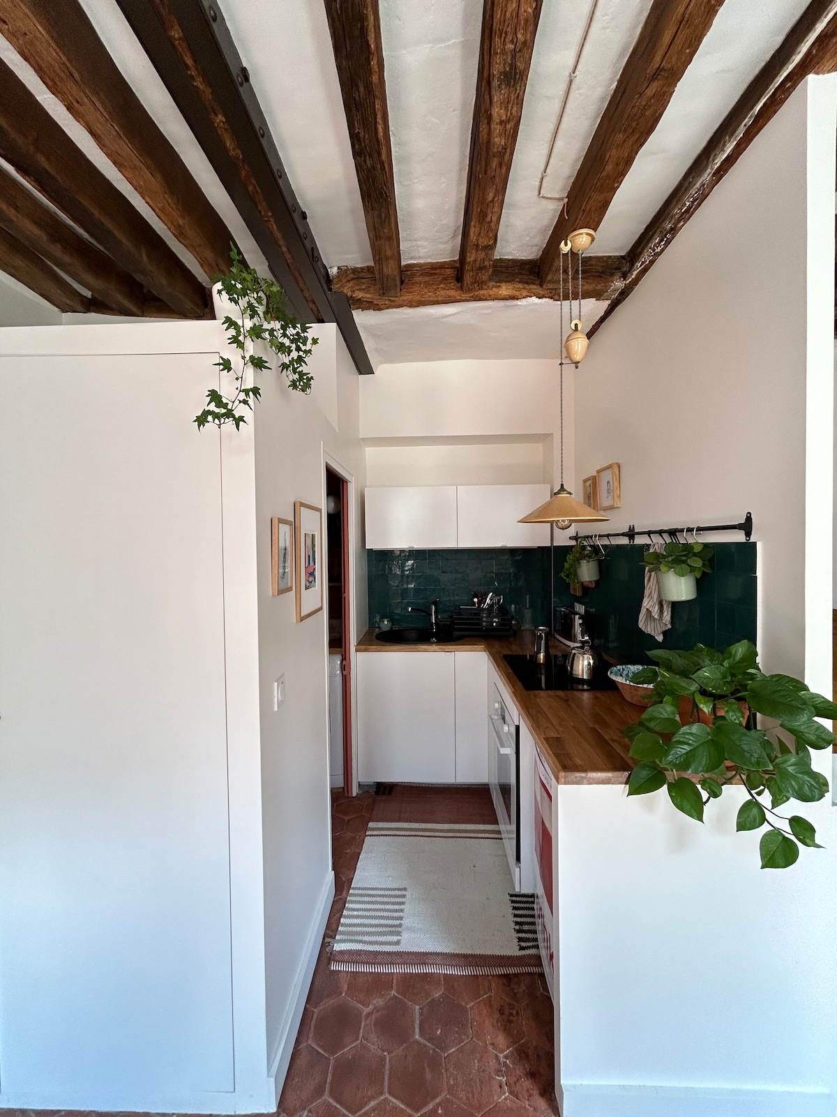 Enjoy our elegant Parisian apartment. We are also happy to share our 15 years of Parisian experiences as well as our tips and habits regarding activities around our neighborhood and in Paris ! The apartment is fully furnished and offers a kitchen open to the living room, a bedroom with a large quality double bed (160×200) and a bathroom. The apartment is located on the 4th and last floor (without elevator: not recommended for XXL luggage)!