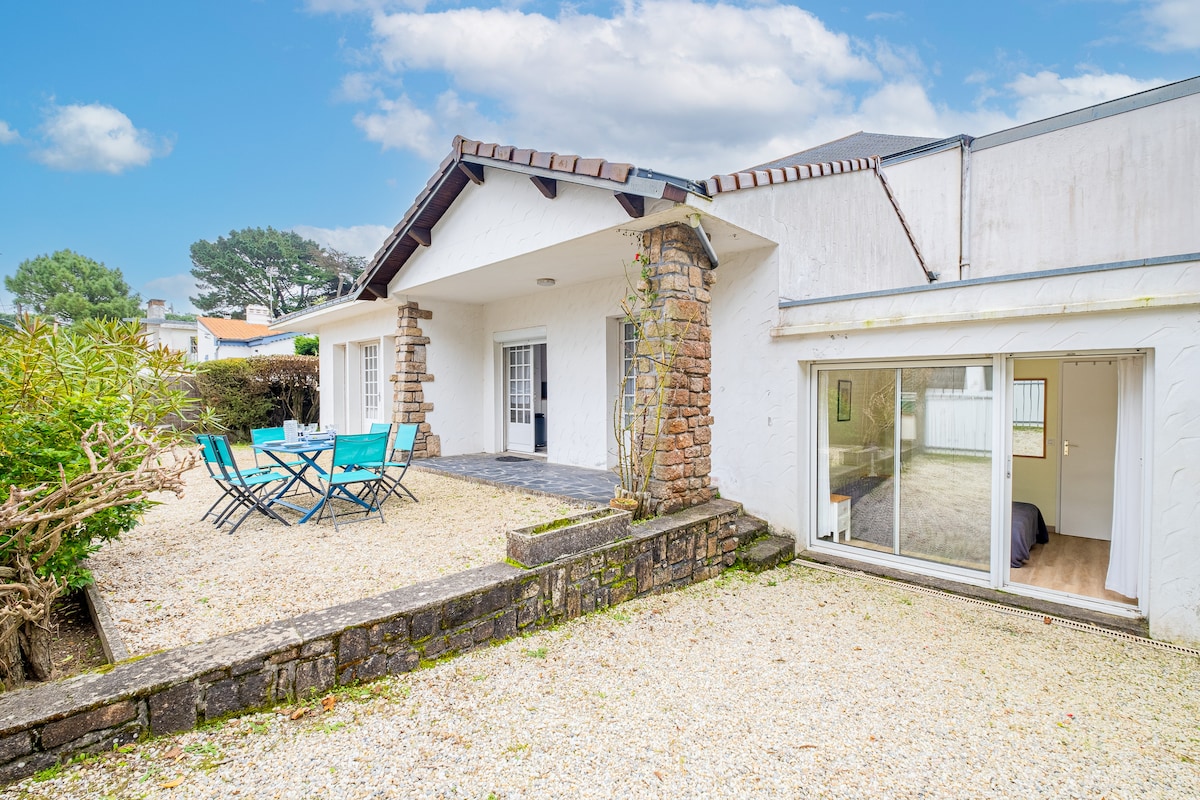 Kaakit-akit na bahay na 800 metro ang layo sa tabing-dagat at 500 metro ang layo sa pamilihan. Ito ang pangalawang tahanan namin; matatagpuan ito sa sentro ng La Baule, malapit sa lahat ng serbisyo. Mayroon itong hardin na 200 m² na ganap na nabakuran, at sasalu-salubungin ka nito nang may lahat ng kaginhawaan. May 2 kuwarto ang bahay na may sariling banyo ang bawat isa. Posibleng magdagdag ng 2 higaan at napakakomportable ng sofa bed. Madaling makapunta sa istasyon ng tren at malapit sa shopping area na wala pang 5 minuto ang layo.
