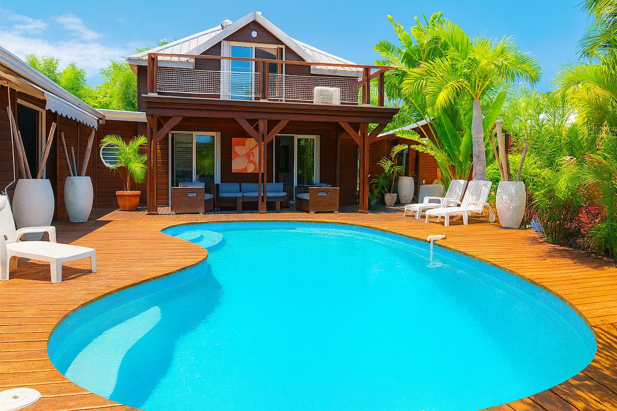 Case en bois de charme « RETOUR DE PLAGE » est située, à 150 m du Lagon sur la plus belle partie de plage pour snorkelling et activités nautiques Des patates de corail magnifiques et poissons tropicaux vous raviront dans cette zone très préservée . Proche des axes principaux pour partir découvrir notre belle île… Vous pourrez vous reposer ensuite au bord de la piscine sous les cocotiers au calme Accès plage lagon direct Lieu très recherché pour des vacances de rêve