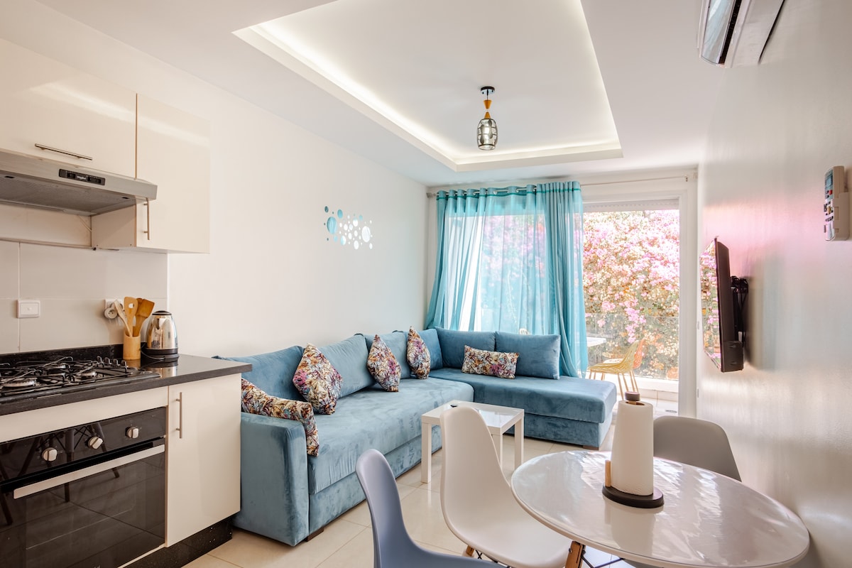 Bright and cozy studio just 2 minutes from the ocean, featuring two large windows that fill the space with natural light and offer beautiful sea and sunset views. Enjoy fast fibre Wi‑Fi, a hot shower, and a fresh, comfortable atmosphere with no moisture. The kitchen includes essential equipment, with extras available on request. Ideal for solo travelers, digital nomads, or couples seeking calm and simplicity by the sea.