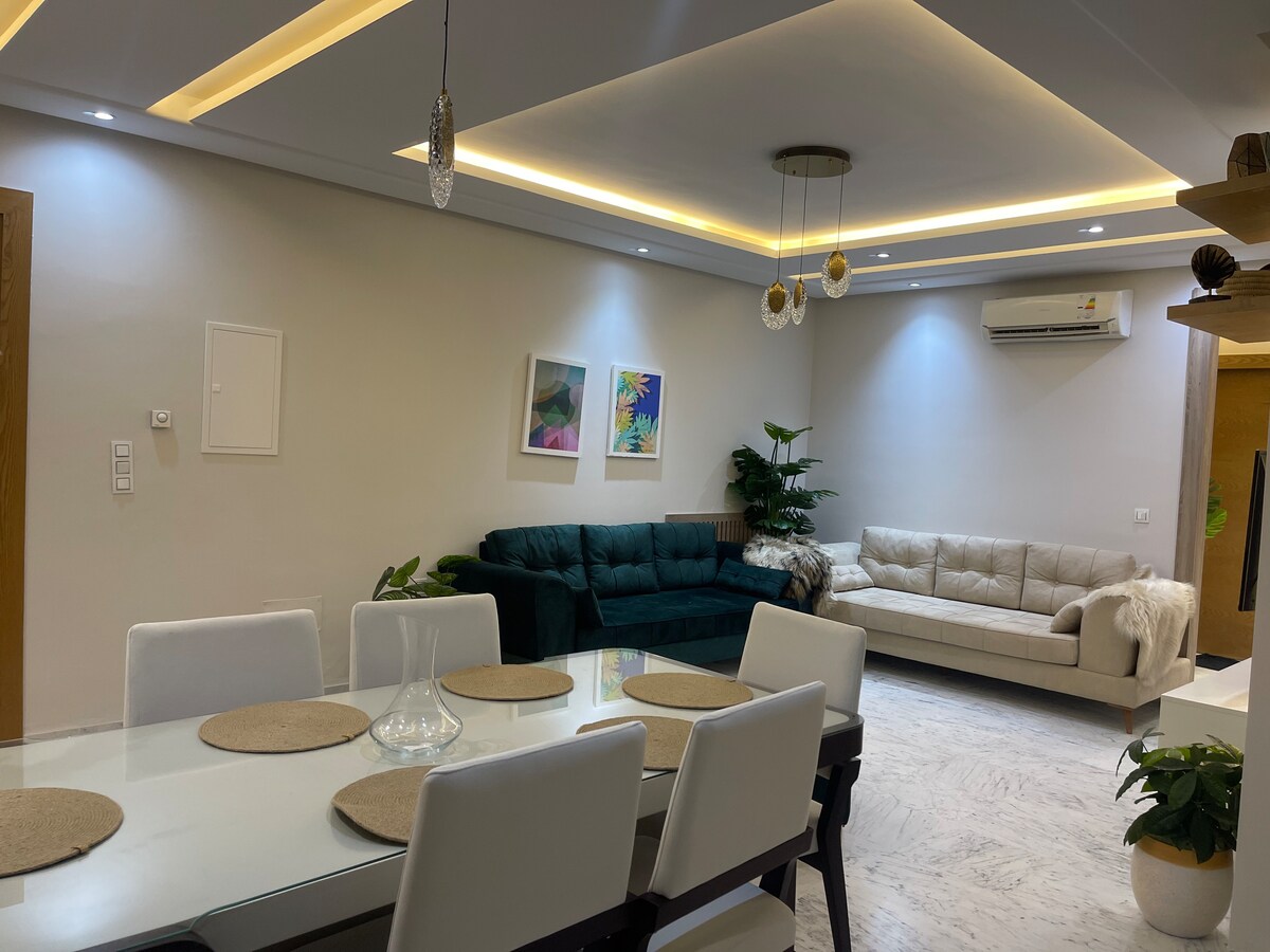 Ang El houch ay isang apartment na pinalamutian ng tradisyonal na istilo ng Tunisia na nagpapakita ng natatangi at tipikal na istilo. 2 minutong lakad mula sa beach 3 km To Port El Kantaoui ( Harbour Marina ) 3 km mula sa Mall Of Sousse ( Mga Tindahan, Sinehan, mga parke at restawran ng mga bata) 10 km mula sa downtown Sousse ( Sousse Medina, Archaeological Museum )