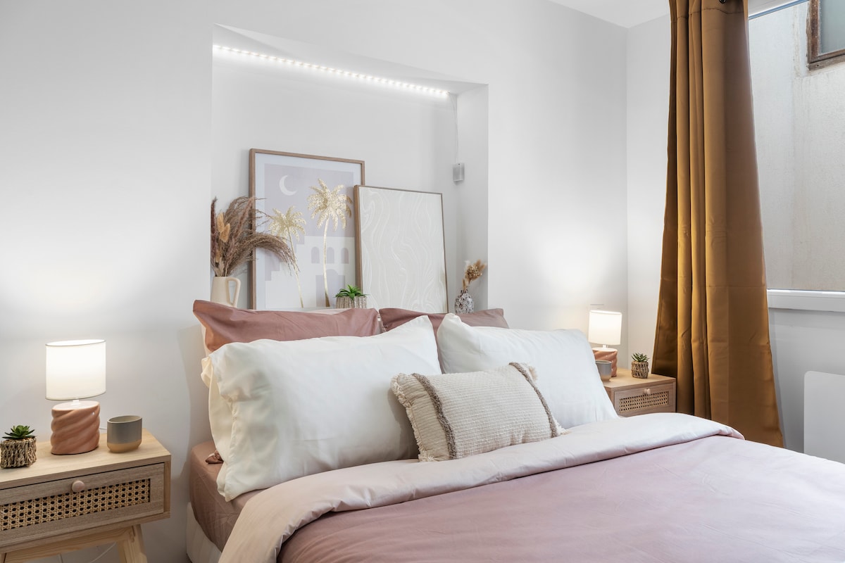 Maligayang pagdating sa inayos na 2 - room apartment na 32 m² na ito, na may perpektong lokasyon sa isa sa mga pinakasikat na lugar ng Toulon: Mourillon. 30 metro lang mula sa beach, masisiyahan ka sa natatanging kapaligiran sa pamumuhay sa pagitan ng dagat, araw at buhay na kapitbahayan. Lahat sa loob ng maigsing distansya: Dalampasigan, restawran, cafe, panaderya, supermarket, Provençal market, bus stop, at maging ang bangka - bus papunta sa downtown Toulon! Perpekto para sa nakakarelaks na pamamalagi, maikling lakad papunta sa dagat at sa lungsod.