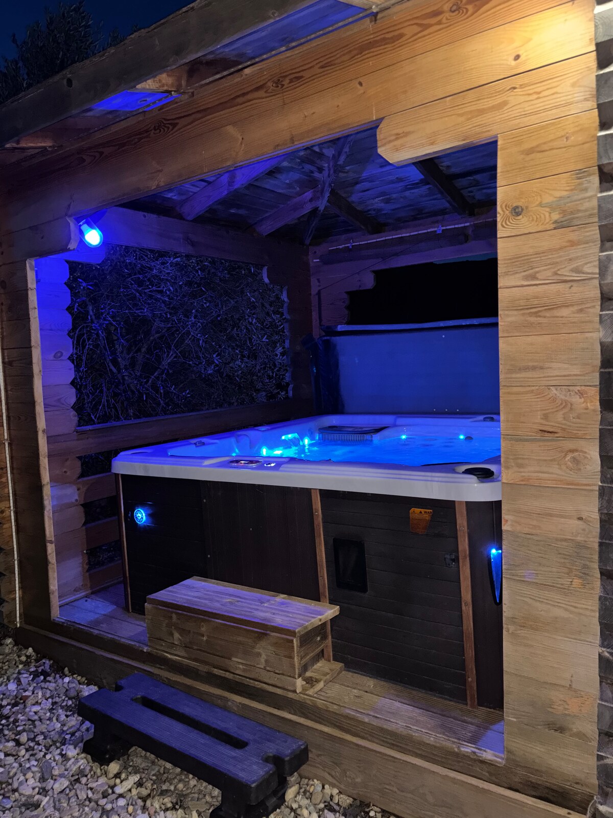 Tuklasin ang hindi pangkaraniwang lugar na ito para gumugol ng mga hindi malilimutang sandali! Masiyahan sa mainit na hot spa sa taglamig, pati na rin sa nakakapreskong tag - init Buksan ang 7/7 , 24/7 na Ganap na Pribado , na hindi nakikita, na matatagpuan sa isang "panloob" na hardin. Mamamangha ka! Ilang metro lang ang layo ng naka - air condition na bahay na ito mula sa mga grocery store , panaderya, maliit na restawran, ilang minuto mula sa dagat sakay ng kotse!
