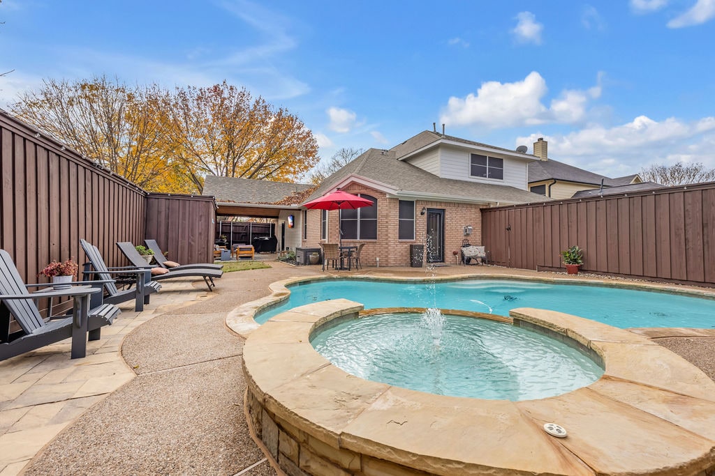 Damhin ang tuktok ng marangyang pamumuhay sa Plano/Frisco gamit ang aming eksklusibong property, na nag - aalok ng komprehensibong hanay ng mga amenidad sa ilalim ng isang bubong. Matatagpuan sa aming oasis sa likod - bahay ay isang natatanging hot tub na may estilo ng resort, na kumpleto sa mga plush sofa set at isang sakop na pergola para sa tunay na relaxation. Ang mga opsyon sa libangan ay may iba 't ibang pagpipilian ng mga arcade game, air hockey table, table tennis, surround sound theater room at trampoline, na tinitiyak ang walang katapusang kasiyahan para sa iyong pamilya o mga kaibigan.