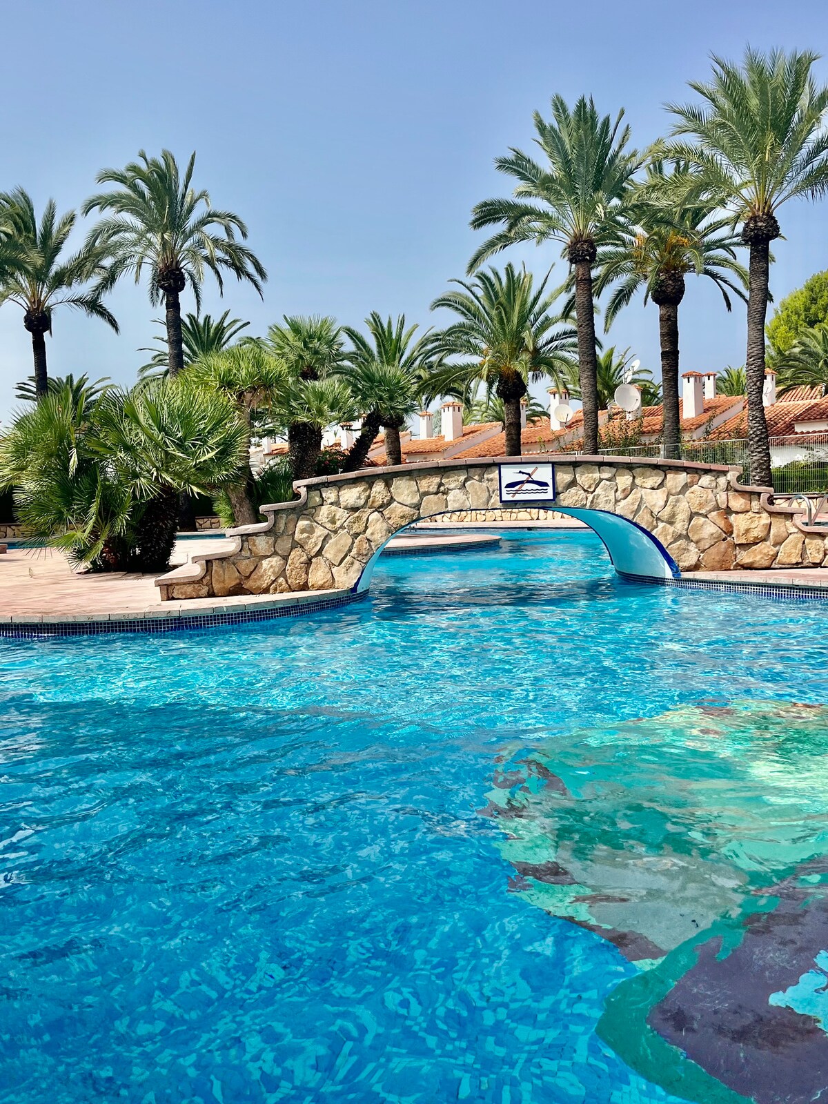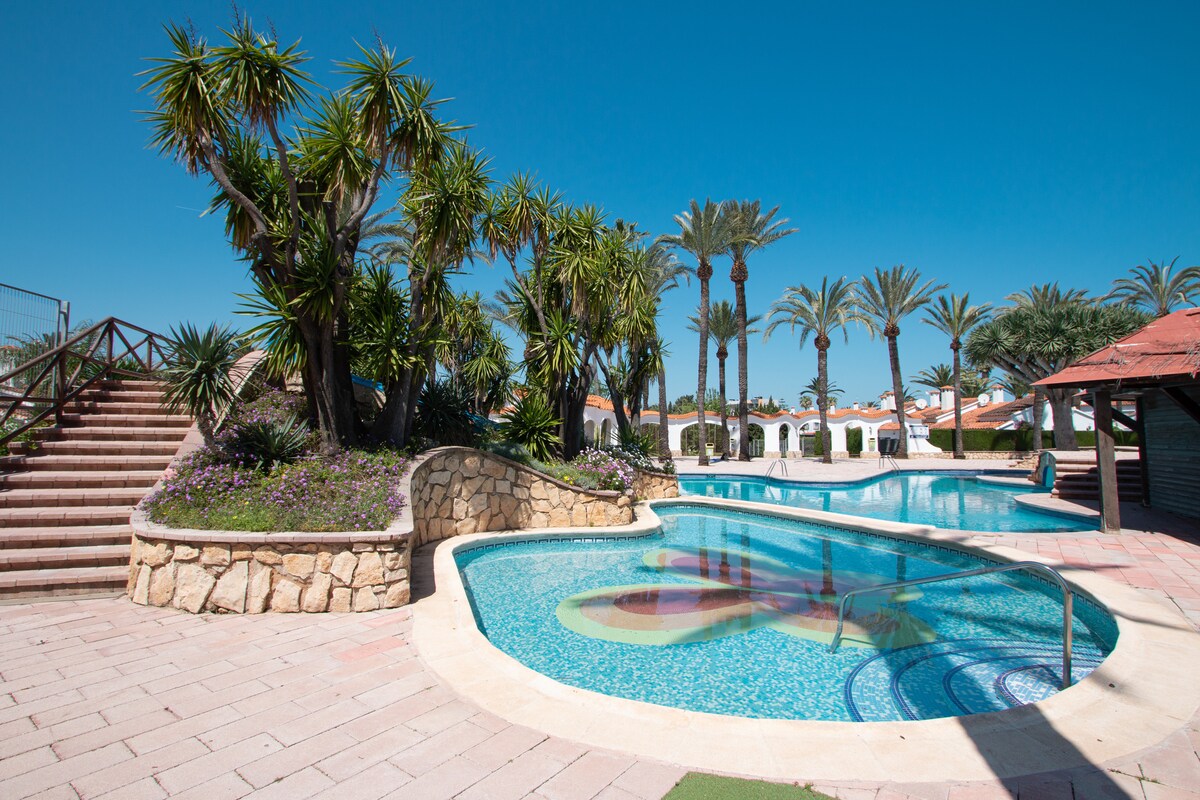 Apat na minutong lakad mula sa beach ng buhangin, apartment na pinalamutian ng pag - iingat, napakalinaw na mga kuwarto sa buong araw. Maaliwalas na terrace na may kagandahan at mga tanawin ng berdeng lugar na may mga puno ng palma, na may malambot na artipisyal na damo at natural na mga hibla. May air conditioning, SmartTV, at fiber Internet, kusina na nilagyan ng lahat ng kailangan mo. Access sa pinakamagagandang pribadong pool sa buong Denia, na may mga slide. Bukas sa buong taon, na may beach bar at lifeguard sa panahon. 💻 on | nstg. entrepalmerasdenia