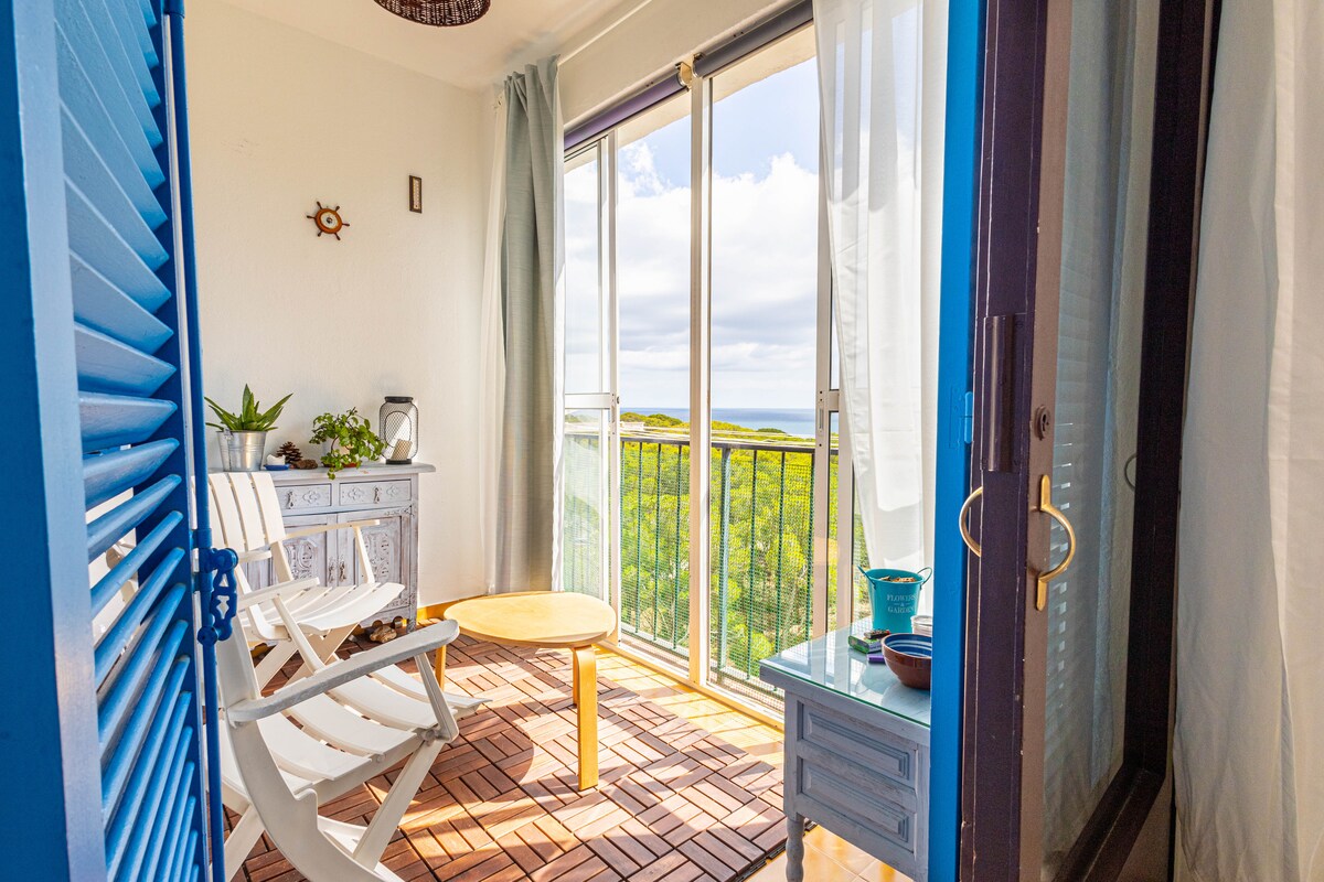 Ganap na naayos ang komportableng apartment, na may malaking terrace kung saan matatanaw ang dagat, may pribilehiyo at tahimik na lokasyon, sa isa sa mga pinakamagandang beach ng Costa Brava, ang beach ng Almadrava. May pribadong direktang access sa beach ang apartment. Mula sa terrace, sa ilalim ng isang malaking natural na kahoy na pergola, perpekto para sa panlabas na kainan o pagbibilad sa araw, maaari mong tangkilikin ang mga kamangha - manghang tanawin ng beach at ang magandang baybayin ng Rosas.