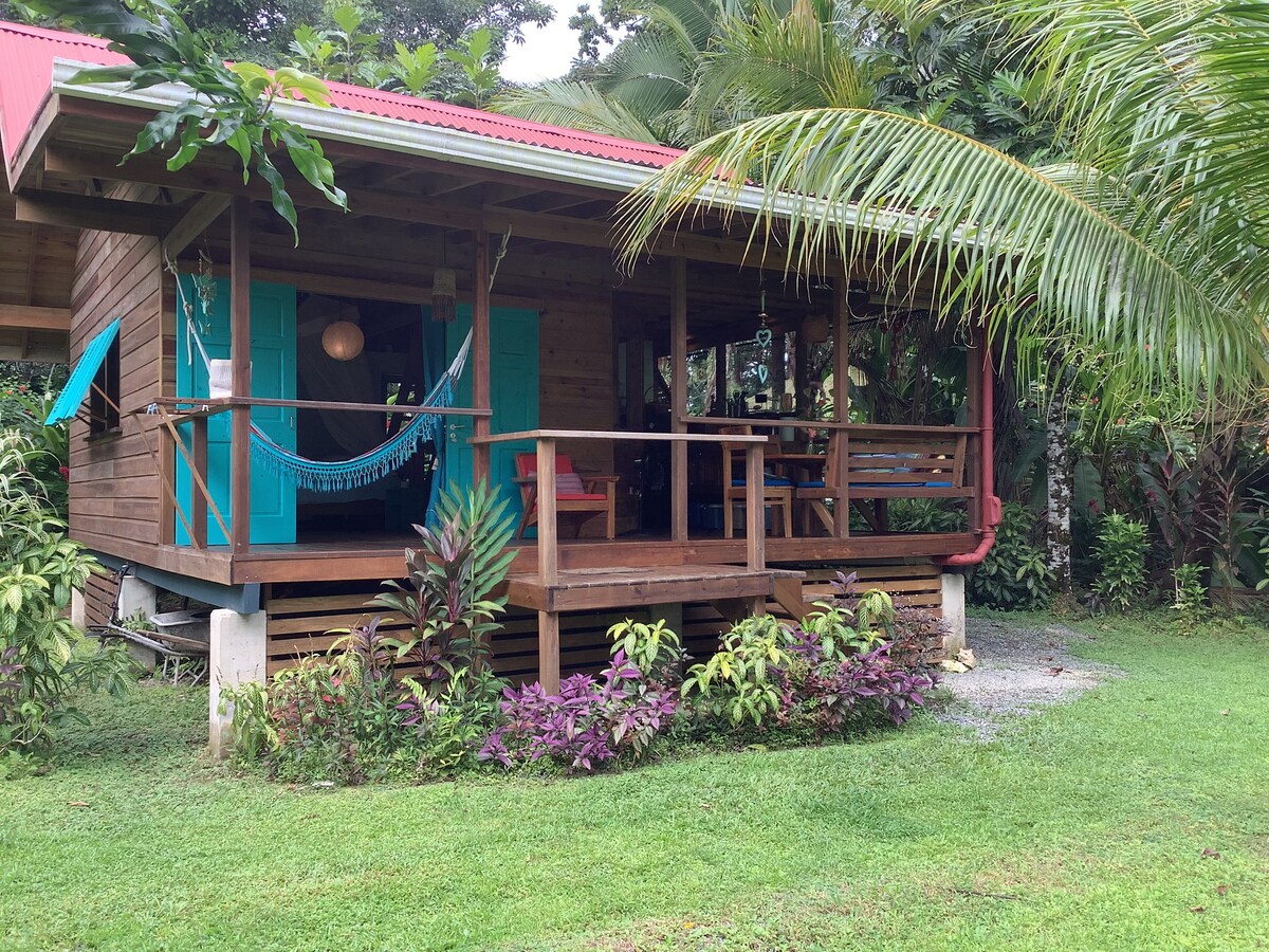 Masiyahan sa iyong bakasyon sa rustic jungle house bilang isang mahilig sa kalikasan at beach sa ilalim mismo ng mga higanteng rainforest. 200 metro lang ang layo sa mahabang beach na may buhangin at 9 km ang layo sa mataong Bocas Town. Makakapamalagi ang 5 tao sa 2 kuwarto ng cottage, na may kusina sa labas at malaking banyo sa labas na may rainforest shower (may mainit na tubig!) at kahoy na bathtub. Damhin ang kagubatan nang malapitan ng mga kakaibang ibon, howler monkeys, sloths at mga tunog ng karagatan. May bayad na almusal araw‑araw