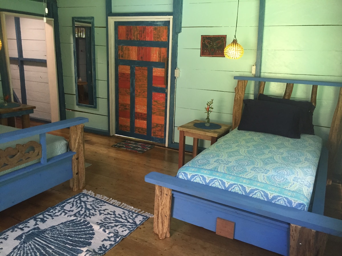 Beautiful Eco Beach House with luxury touches! Relax on your spacious private deck overlooking the coral reef. Snorkel right off the dock or hop into the warm water from your beachfront cabana. Be mesmerized by the vivid overwater sunsets in front, coconut grove on either side, and lush rainforest behind. Fall asleep to the tranquil sound of waves lapping below. Wake refreshed with coconut water from your own coconut grove. Our team looks forward to welcoming you! -GoGo, Mili, Mikel, Eimy, Baby