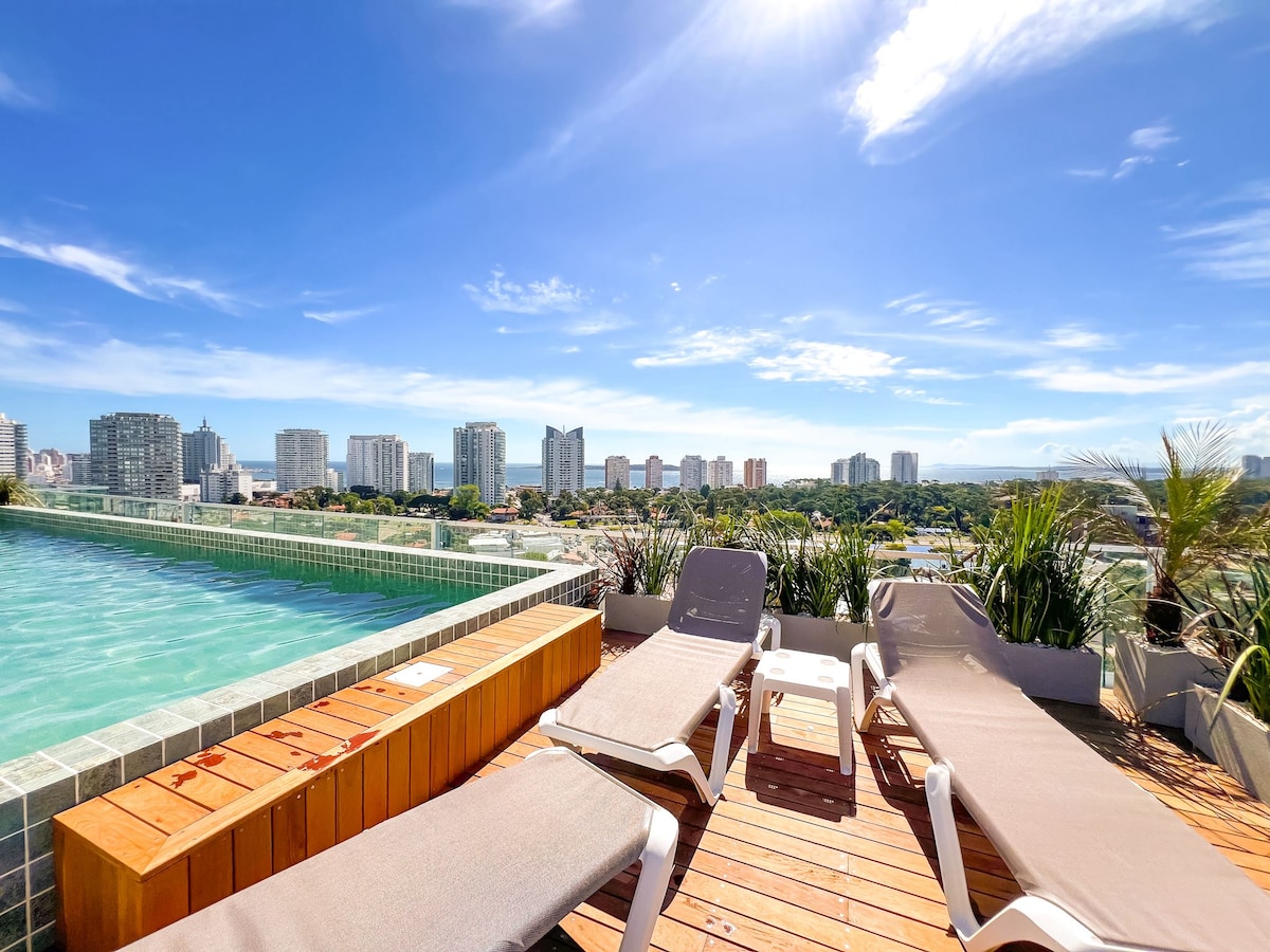 Moderno apartamento para 2 personas totalmente equipado con espectacular vista al mar y la península con 2 balcones, situado a cuadras del centro y de las playas mansa & brava. Incluye el uso de cochera propia, amenities de alta categoría como piscina interna y externa, sauna, gimnasio, business lounge y recepción atendida 24h. Ideal para relajarse y disfrutar de Punta del Este durante todo el año o combinar descanso y trabajo ya que dispone de una conexión rápida de internet (200 Mbps).