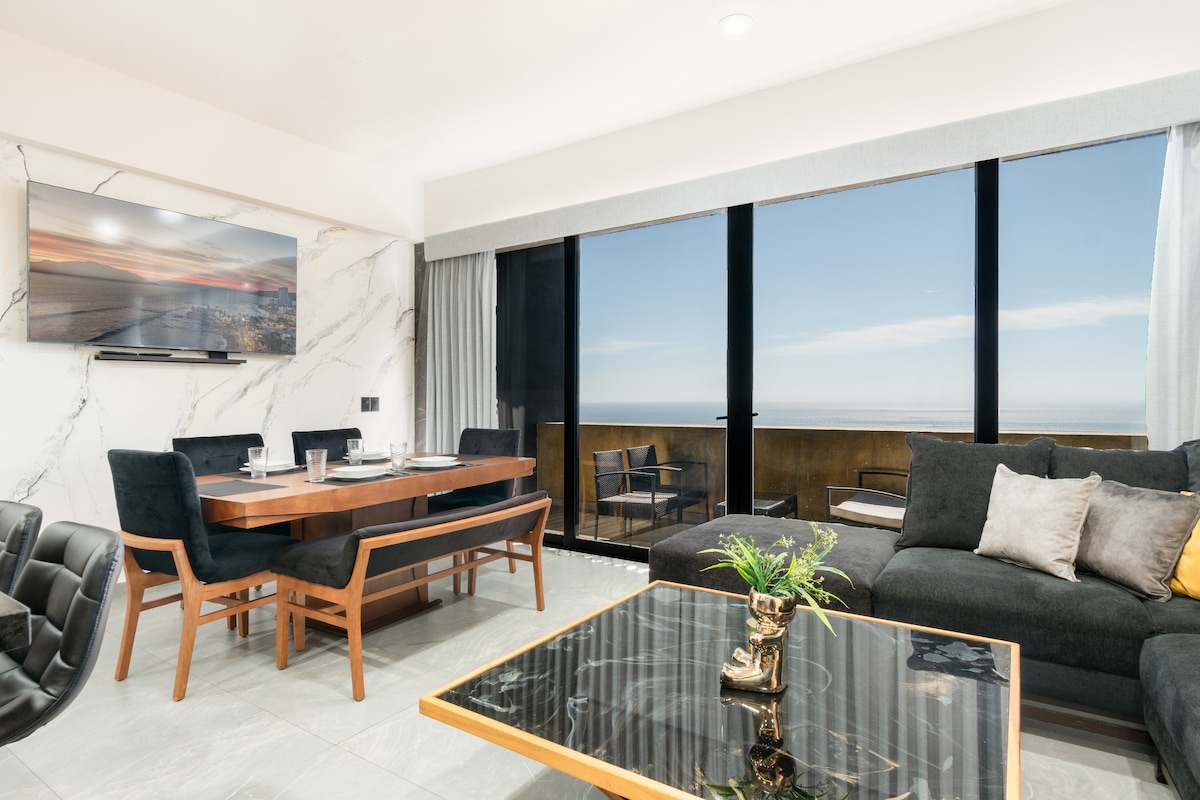 Gumising sa tabi ng karagatan sa The Grand O Living, isang eleganteng tuluyan na idinisenyo para makapagpahinga ka. Kape sa terasa habang sumisikat ang araw, at tanawin ng gintong paglubog ng araw sa sala. Matatagpuan sa Malecón, 50 metro lang mula sa beach, at may pool na parang nasa resort, gym, at mga lounge area. Mainam para sa mga mag‑asawa at pamilyang naghahanap ng ginhawa at tanawin ng karagatan. 2 min sa Mazatlán Letters 5 min sa New Aquarium 4 na minuto papunta sa Teodoro Mariscal Stadium