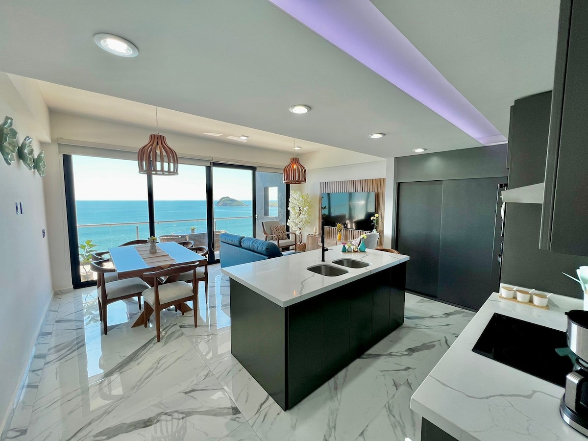Mag-enjoy sa Mazatlan mula sa marangyang apartment na ito sa Zona Dorada, sa loob ng eksklusibong Torre Eleve. Magrelaks sa pribadong balkonahe o sa pool na may magandang tanawin. Direktang access sa beach, roof bar, bowling alley, palaruan, at gym. Kumpleto sa kagamitang pang‑luxury, perpekto para sa mag‑asawa, pamilya, o mga biyaheng pan‑pahinga. Ilang hakbang lang ang layo sa mga restawran, tindahan, at nightlife. Makaranas ng marangyang nasa tabing - dagat!
