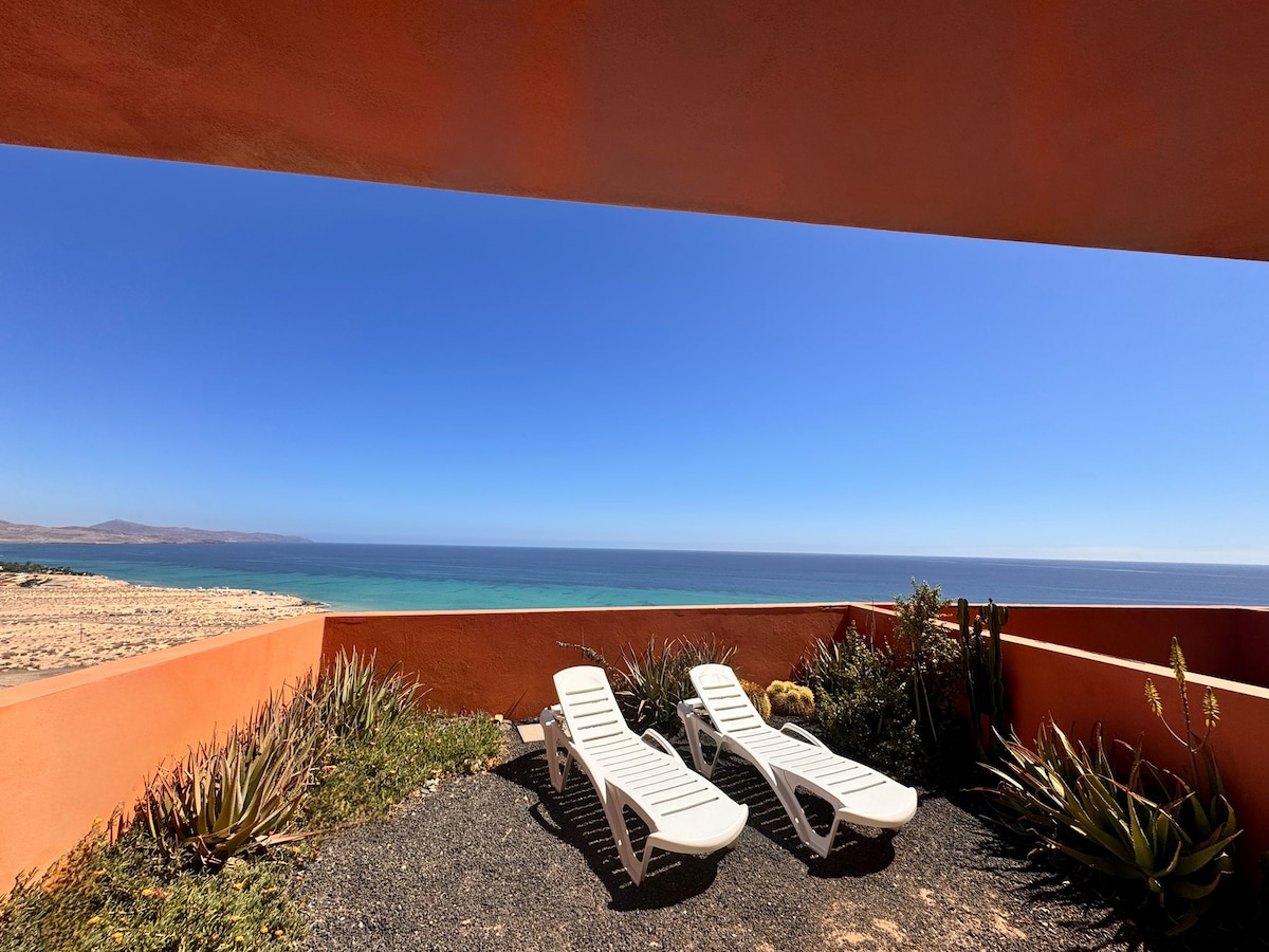 Isang kaakit - akit na lugar para masiyahan sa karapat - dapat na bakasyon, sa katahimikan, relaxation, na may lahat ng kaginhawaan at iniangkop na tulong. Nakaharap sa karagatan, kung saan matatanaw ang kahanga - hangang tanawin na may mga nakakamanghang tanawin ng sikat na Sotavento beach sa timog ng Fuerteventura Costa Calma, na hinahangaan ang araw at buwan na sumisikat mula sa dagat sa harap ng iyong mga mata. Isang natatanging setting para sa iyong hindi malilimutang bakasyon. Mayroon kaming 2 apartment sa malapit ng aking kapatid na si Noemi at pinapangasiwaan namin ang mga ito nang may labis na pagmamahal.