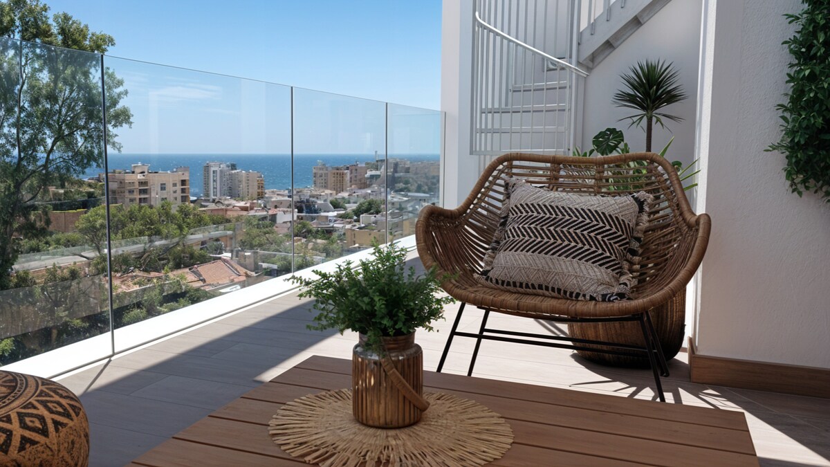 Magandang apartment na may 1 kuwarto, 40m2 at 60m2 na terrace. Napakakomportable. May tanawin ng karagatan at araw buong araw. Tumingin sa kanluran. Nasa unang palapag ito. Mainam ito para sa mag‑asawa. BINABAWALAN ang sanggol at bata. May 60 apartment sa gusali. Ang pool ay pana-panahon at komportable. Ilang minutong lakad lang ang apartment ko mula sa promenade, Santa Ana beach, parke, at mga hintuan ng bus. Kumpleto ang kagamitan sa aking kusina. May 2 AC at bago ang lahat ng kasangkapan. Mayroon akong 600 MB na WiFi
