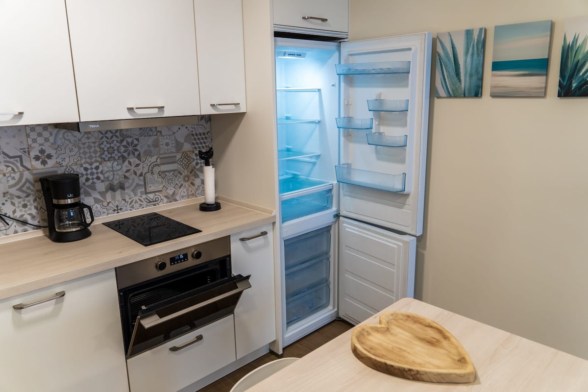 Bumalik at magrelaks sa kalmado at naka - istilong tuluyan na ito na may tanawin ng karagatan, air conditioning, libreng Wi - Fi, mga libreng toiletry, safe box, double bed, mga tuwalya at bed linen. Nag - aalok kami ng libreng kape at tsaa, isang malaking 55 inch TV sa sala at 32 inch Tv sa silid - tulugan na may libreng access sa Netflix, Prime Video, Disney Plus, IPTV na may mga channel mula sa buong mundo, washing machine na may dryer, at libreng sabong panlaba, kusinang kumpleto sa kagamitan, malaking refrigerator at freezer, malaking sofa bed sa sala ,atbp.