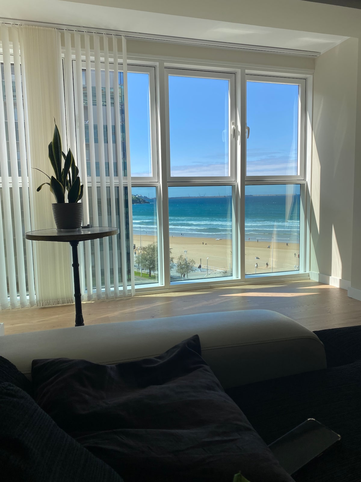 Bagong inayos na apartment sa Gijon Beach, sa harap ng hagdan 10. May bukas at kumpletong kusina sa apartment ( washing machine, dishwasher, microwave...). Kuwartong may TV at cable channel, sofa bed, malalaking bintana kung saan masisiyahan ka sa tanawin ng beach. Kuwartong may double bed, built - in na aparador, maliit na lugar para sa pagbabasa. Banyo na may bintana, malaking shower na may screen, lababo, towel rack at toilet na may bidet.