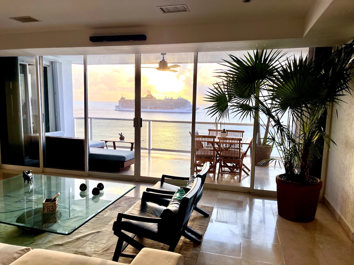 Partikular na loft style apartment sa gitna ng Playa del Carmen. 3 bloke lang mula sa sikat na 5th Av., ilang hakbang ang layo mula sa beach. Madali kang makakapunta sa mga pangunahing tindahan, pamilihan, at restawran. 1 bloke ang layo ng istasyon ng bus papunta sa paliparan at Tulum. Tanawin ng karagatan mula sa pool; masisiyahan ka sa ilan sa mga pinakamagagandang amenidad sa bayan. Gym, 3 Jacuzzi, massage room at libreng paradahan sa loob ng gusali, paglalaba. Isang komportable at eleganteng pamamalagi para sa iyong bakasyon sa PdC. Available ang Personal Trainer at Yoga.