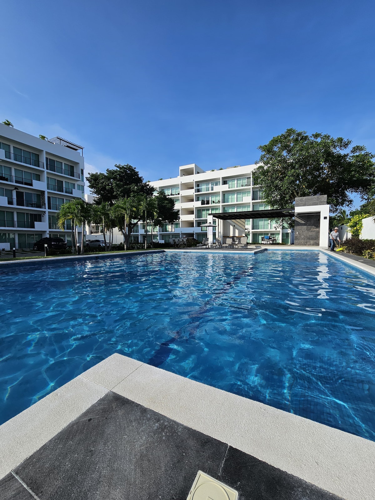 Ground floor apartment na may lahat ng serbisyo at buong interior pagkatapos ng OTIS/JOHN. Malaking pool na may magandang hardin, pribadong Jacuzzi, 24/7 na seguridad, 300 MB na bilis ng WIFI, at kumpletong kusina. Ilang hakbang lang ang layo ng pribadong paradahan mo mula sa pinto. Matatagpuan sa pangunahing Ave sa lugar ng Diamante, 7 min mula sa Aero at 1.2 km mula sa beach. May 2 kuwarto at sala na may mga mini‑split, 2 banyo, mga Bluetooth speaker sa kisame, at natitiklop na mesa sa sala na may tanawin ng hardin.