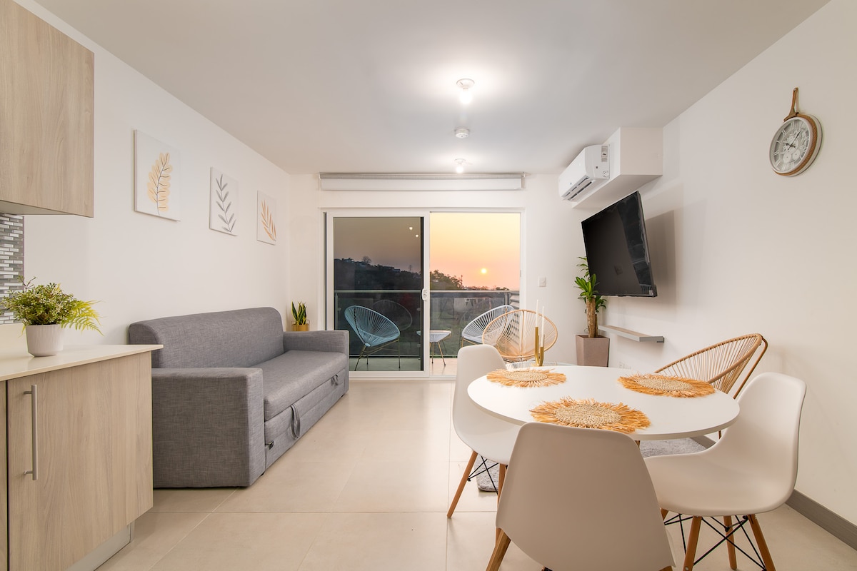 Nag - aalok ang kaakit - akit na apartment na ito, na matatagpuan sa ika -17 palapag, ng mga nakamamanghang tanawin ng magandang Mantas Beach. Ang natural na liwanag ay dumadaloy sa buong interior, habang ang hangin ng dagat ay nagbibigay ng nakakapreskong at nakakarelaks na pakiramdam. Sa pamamagitan ng natatanging dekorasyon, maingat na idinisenyo ang bawat sulok para mabigyan ka ng karanasan ng kaginhawaan at estilo. Bukod pa rito, magkakaroon ka ng access sa Beach Club, isang perpektong lugar para masiyahan sa mga natatanging sandali na nakaharap sa dagat.