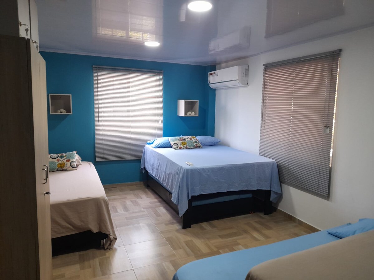 Apartment ng 100 Mts sa isang ikatlong antas, sa moderno at bagong Cotton piraso gusali, ay may 3 maluwag at kumportableng kuwarto na may air conditioning pati na rin: isa na may 2 double bed, tv , closet type dresser at pribadong banyo, isa pang kuwarto na may 1 double bed at 1 single nest bed, closet at tv , ang ikatlong kuwarto ng isang maliit na mas maliit ay may 1 double bed; ang apartment ay may 2 banyo ; Dining room, kusinang kumpleto sa kagamitan, laundry area, balkonahe at terrace