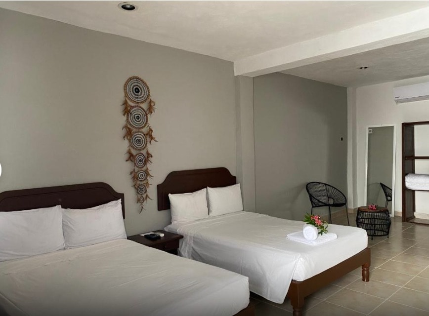 Perfecta para amigos, familias pequeñas o parejas que viajan juntas, esta habitación ofrece dos camas queen size en un espacio amplio y funcional. Esta habitación es ideal para quienes desean descansar después de explorar la Quinta Avenida o disfrutar de la playa, contando con aire acondicionado, wifi gratuito, y acceso a nuestra barra de café y agua purificada en recepción, además del beneficio de estar en una de las zonas mejor conectadas de Playa.