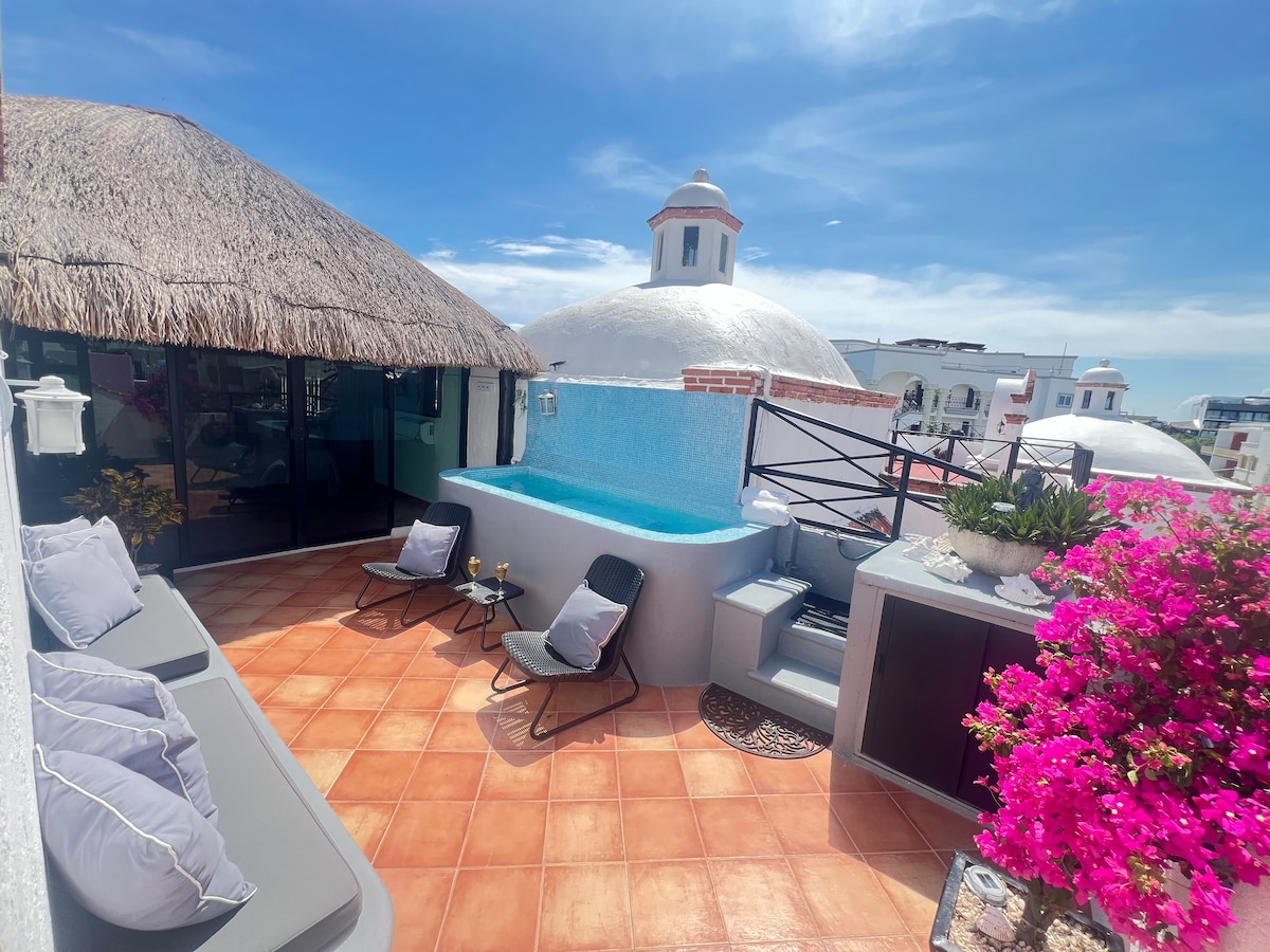 Matatagpuan sa pinakamaganda at pinaka - downtown area ng beach. Napakaluwag at komportableng bahay na mayroon ding pribadong pool. Ngunit ang pinakamagandang bahagi ay ito ay isang bloke mula sa beach at mga hakbang mula sa 5th Avenue , na siyang pangunahing kalye ng mga restawran, tindahan, at bar. Ito ay isang bloke mula sa istasyon ng bus at dalawang bloke mula sa ferry hanggang sa Cozumel. Kung galing ka sa Cancun Airport, puwede kang sumakay ng bus nang hindi kinakailangang gumamit ng taxi. Malapit lang ito sa kabayanan, hindi mo kailangan ng kotse.