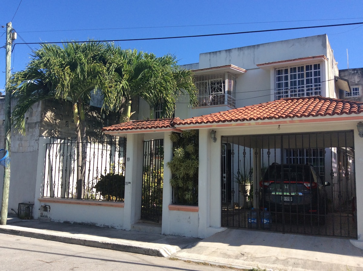 Halika at mag - enjoy sa isang tahimik at magandang lugar, na may pool, terrace, mga lounge chair at duyan. Sa mga kagamitan sa kusina para magluto. Sa banyo, naglalagay kami ng mga tuwalya, shampoo, body wash 🧴 Malapit ito sa Chedraui, puwede kang maglakad roon nang 5 -8 minuto. Isang bloke mula sa Main Street Juarez Avenue, kung puwede kang sumakay ng taxi o van. Sa Juarez avenue, may ilang maliliit na restawran, labahan, at pamilihan na Oxxo. May 3 bloke ito mula sa hiway kung saan puwede mong dalhin ang mga van papunta sa Tulum o Cancún. 20 minutong lakad papunta sa beach.